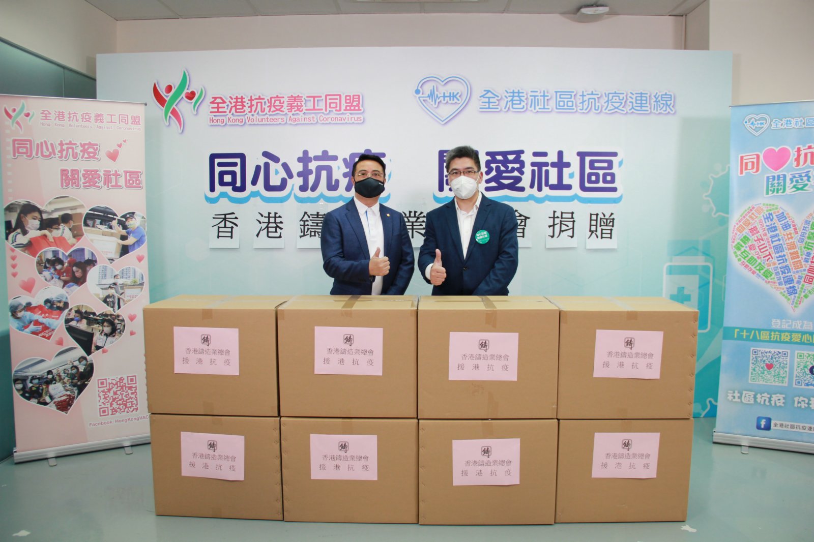 此外,香港鑄造業議會向「全港抗疫義工同盟」、「全港社區抗疫連線」捐贈27萬個FF2P口罩,物資已陸續派發到各社區予有需要人士。交接儀式今天於「連線」秘書處舉行。