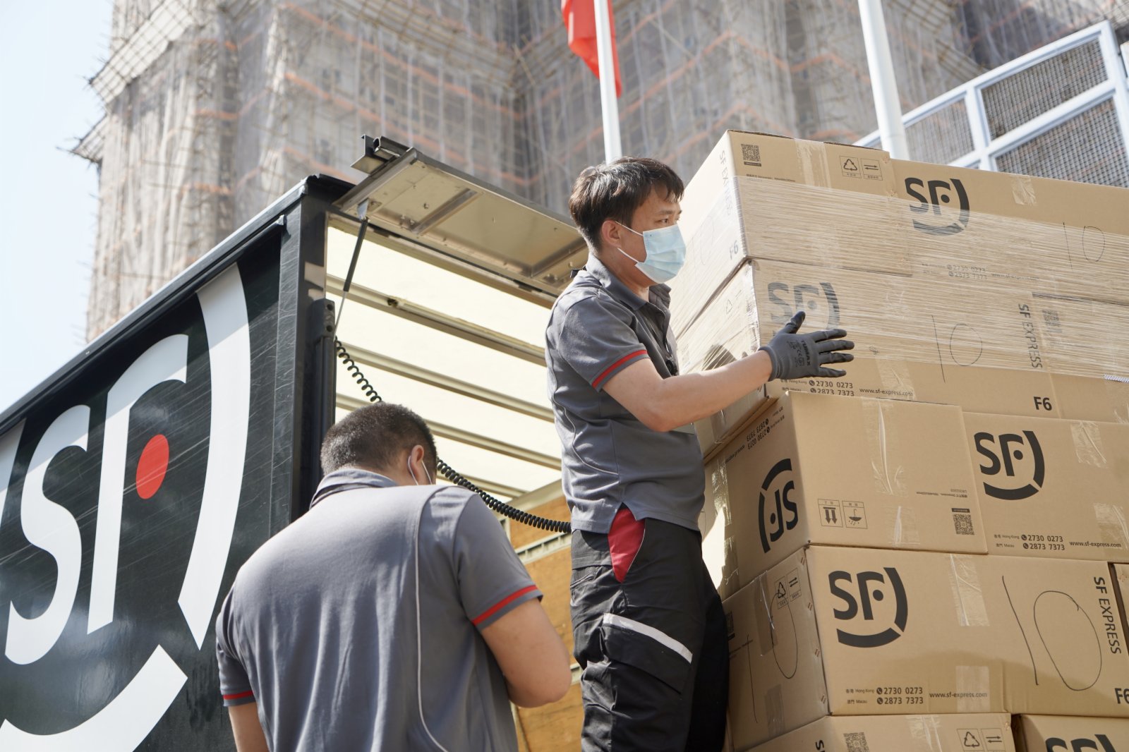 今天(4月14日)首批由順豐香港負責派送共5,000份的抗疫福袋已經全數從「同盟」位於九龍灣的「疫行者基地」接收,將以快遞形式進行派送;順豐香港將會於派送前主動聯絡各登記個案,確認派送地址和時間,務求「快速」、「精準」地把防疫物資運送到有需要的人士手上。順豐香港公共事務部負責人廖家欣及「全港抗疫義工同盟」、「全港社區抗疫連線」秘書長徐海山親身到現場交接物資並協助裝車等工作。