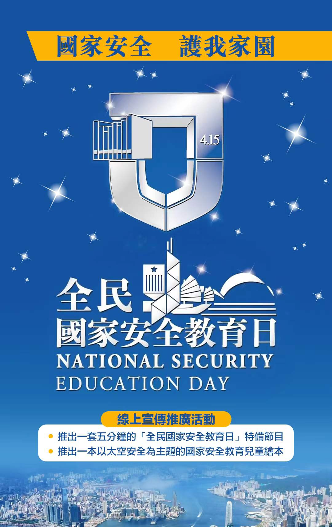 今日(15日)是《香港國安法》實施後第二個「全民國家安全教育日」,亦是香港特別行政區維護國家安全委員會第二次舉行「全民國家安全教育日」,主題為「國家安全 護我家園」,旨在提高全港市民的國家安全意識,營造維護國家安全的濃厚氛圍,增強防範和抵禦安全風險能力,同時加深社會大衆對國家《憲法》、《基本法》和《香港國安法》的認識,更好掌握總體國家安全觀的每一個環節,並藉此培養更強的國民身分認同。