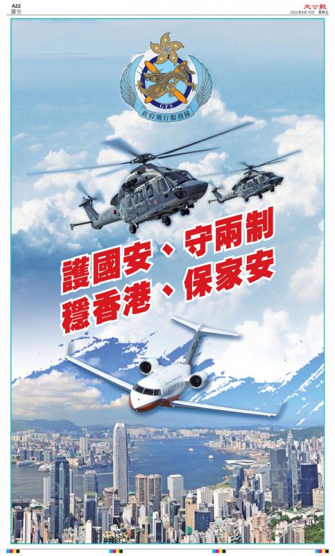 此外,入境處、懲教署及政府飛行服務隊亦發布海報,強調護國安、守兩制、穩香港、保家安。