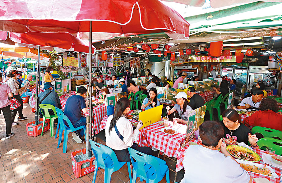 當地多間食肆至下午4時許仍然滿客,有餐廳外還有數十名市民輪候。雖然食肆只限兩人一枱,亦有工作人員檢查「疫苗通行證」,但餐枱貼近,未有遵守1.5米枱距規定。有海鮮酒家員工表示,客流量較往日增約四成,「朝早忙到現在,連飯也沒有時間食。」