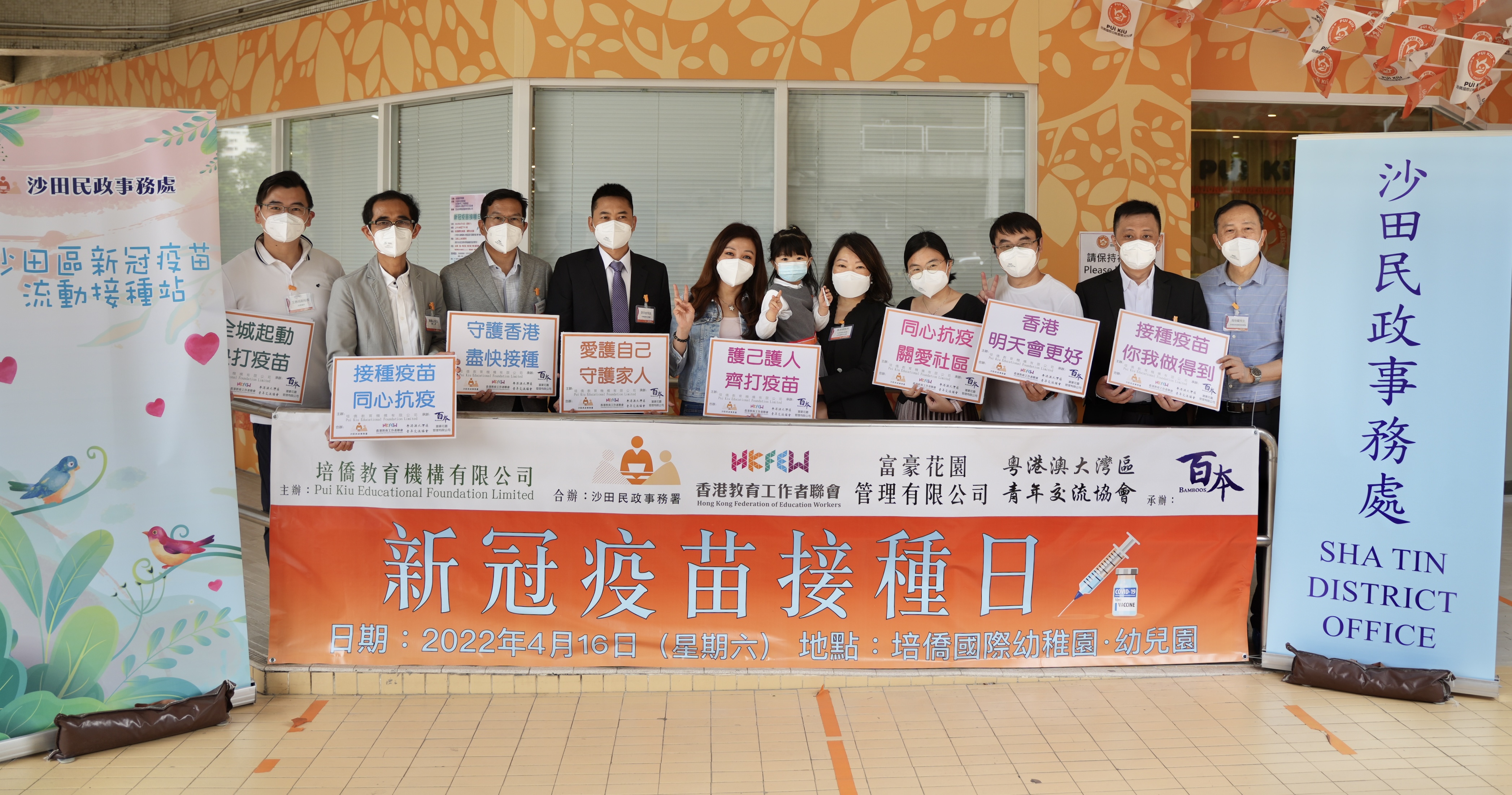 大公文匯全媒體報道,因應本港第五波疫情有緩和趨勢,全港學校下周二(19日)起分階段恢復面授課堂。今日(16 日),培僑教育機構為支援政府的抗疫工作,攜手沙田民政事務處、教聯會、富豪花園管理有限公司及粵港澳大灣區青年交流協會於培僑國際幼稚園共同舉辦「新冠疫苗接種日」活動,協助沙田區市民接種科興疫苗。