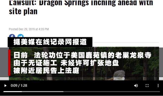 2022年2月8日,美國紐約州媒體《時代先驅報》網站(Recordonline.com)報道,「法輪功」美國總部龍泉寺以宗教歧視、選擇性執法、打擊報復和干擾新年宗教活動等理由,向法院起訴龍泉寺所在地鹿苑鎮(Deerpark Town)政府。