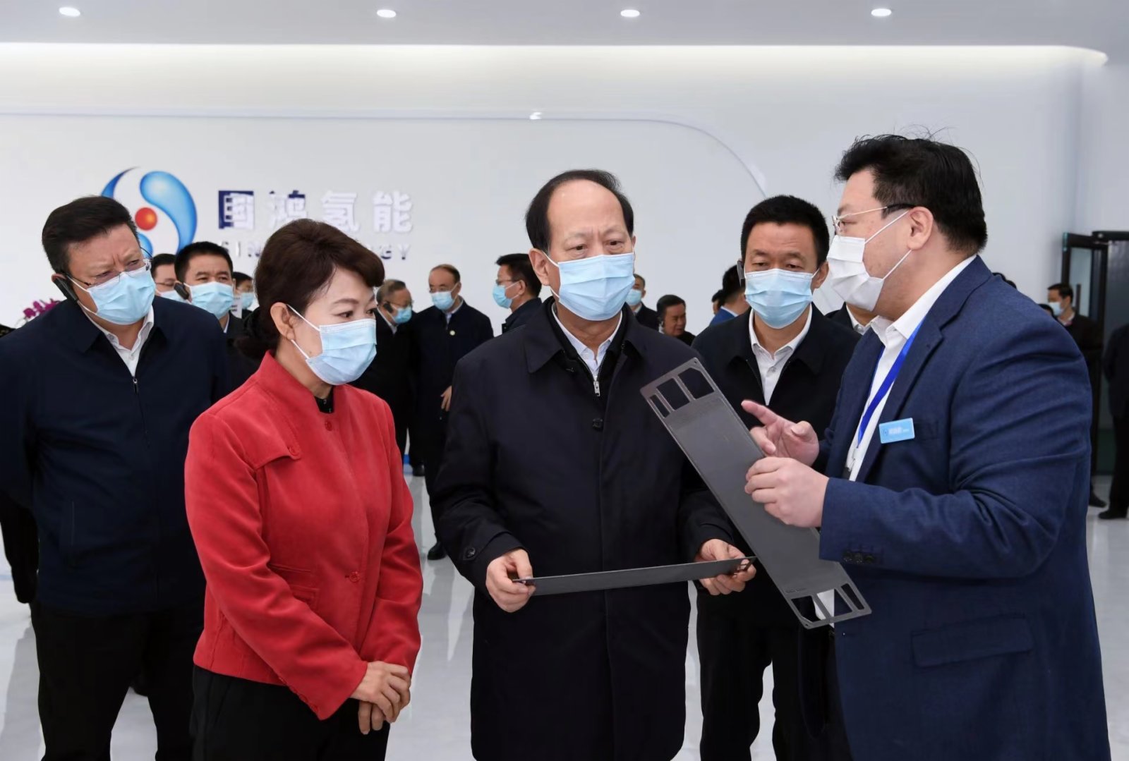 2022年4月8日,內蒙古自治區召開推進高質量發展重大項目建設動員大會。自治區黨委書記、人大常委會主任石泰峰出席大會,並帶隊蒞臨「鄂爾多斯·美錦-國鴻氫能科技產業園」,參觀視察國鴻氫能「大功率氫燃料電池電堆生產及氫能商用車動力系統集成」項目現場。國鴻氫能董事長兼總經理陳曉敏、副總經理劉志祥、副總經理燕希強陪同講解。