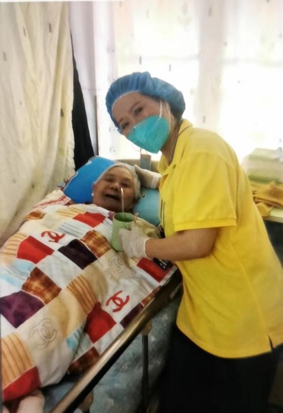 經過培訓考核後,揭艷花被安排在大角咀欣穎院舍護理長者,懷着讓長者頤養天年的愛心善心,她每隔半小時便會對院友服藥情況、情緒和身體狀態、飯量和排便情況等一一詳細記錄在冊。見到有長者不便時,主動幫其剪腳趾甲、擦腳趾縫,遇到癱瘓在床無法行動的長者,則會主動幫忙按摩,用心和長者交流,鼓勵他們積極生活,長者聽到鼓勵後,飯量普遍增大許多,精神也明顯轉好。隨着護理經驗的增加,她還積極主動向主管建議,改進護理工作和優化防疫措施。