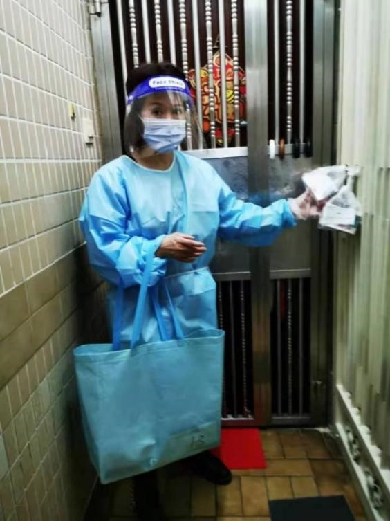 隨着登記求助的人越來越多,僅靠她和家人已無法有效全面服務,只能將與其住地相距較遠的患者介紹給同區建制團體。她則主要擔負住處附近的獨居長者、沒接種疫苗的老人孩子和確有生活困難的街坊。期間發生了一件令她記憶深刻的事,一位家住青衣的譚婆婆3月1號開始有病症,四處求助無果,當3月14日電話聯繫揭艷花時,已氣喘咳嗽嚴重,無法完整說上一句話,病情令人萬分擔憂。揭艷花問清楚住處後,立即將冰箱內留着自用的食品全部打包,再帶上足夠服用8日的連花、金花、維生素C等藥物,急忙驅車趕去婆婆家,隨後一周每日隨訪婆婆病情,經過悉心照料,譚婆婆終於痊癒。
