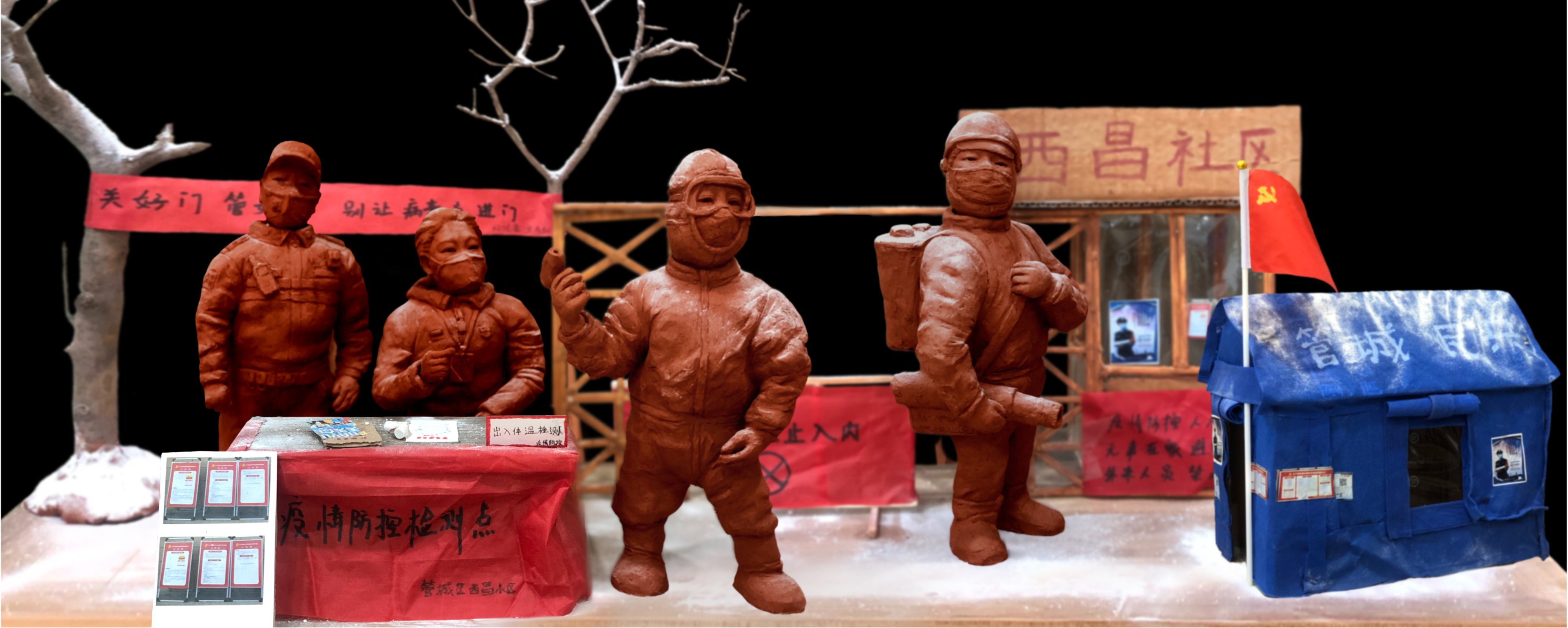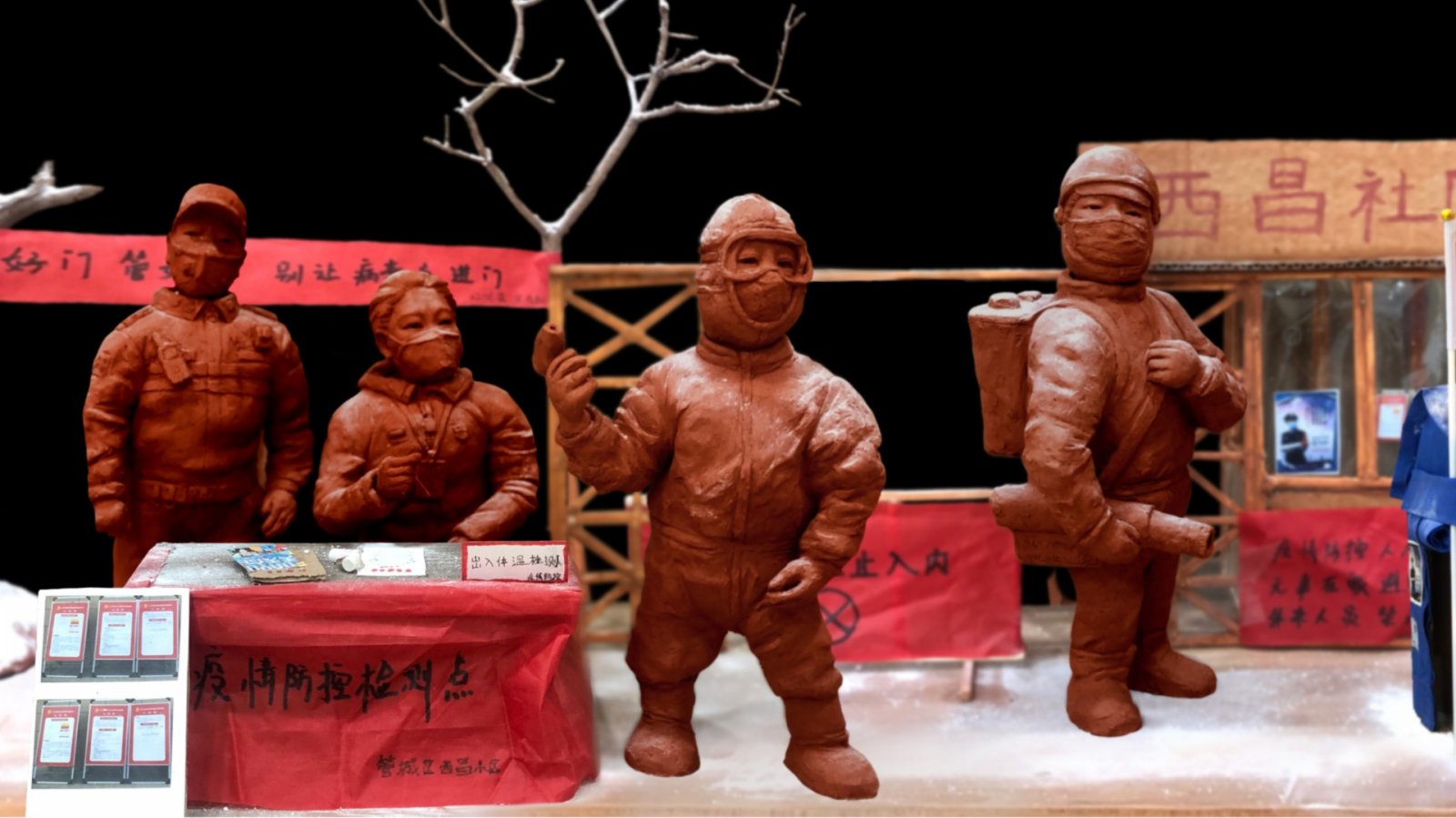 抗擊新冠肺炎疫情期間,趙恩民看到眾多醫護人員沖在一線,便用泥塑創作三組作品,將一線人員消殺防疫、核酸檢測等場景定格。他說,「咱要不把這些感人的場景記錄下來,給年輕人講講,以後都想不起來了,就像刮過一陣風一樣。」