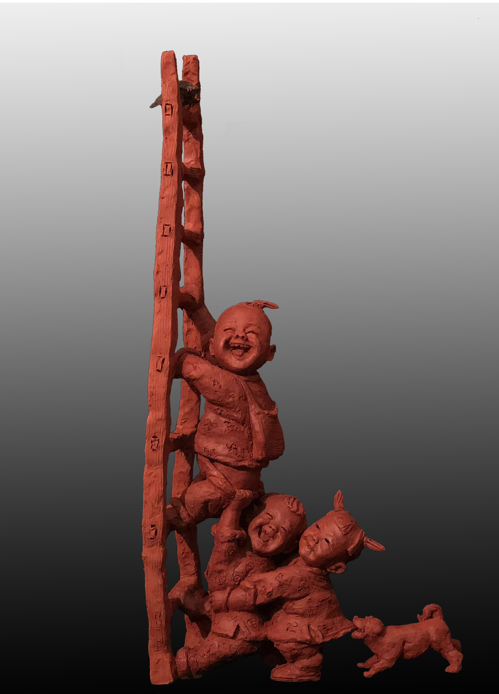 在以後的時間裏,作品塑造的空間一直縈繞在他的腦中,梳理好創作思路,用三年時間遍尋各地,終於找打集韌性與骨架完美結合的泥土材料——紅膠泥。「這個泥越柔它的韌勁就越好,揉揉搓搓裏面的空氣,摔摔打打它的密度越緊。」趙恩民說,紅膠泥色澤紅潤、有粘性、有光澤、抗裂性好,經泡、醒、揉等程序,用自製的塑形木刀進行人物塑形,後經晾曬燒制而成。作品無彩無飾原生態更顯泥土本色。