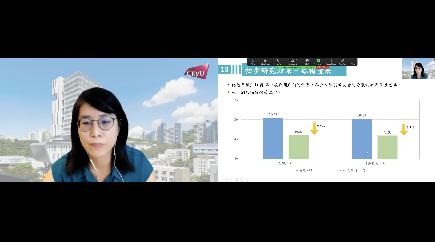 團隊仍在招募義工及長者參與研究,預計研究在一年後完成。研究團隊之一、香港城市大學社會及行為科學系副教授楊婉蘭表示,疫情下除了需關注長者感染風險,他們的心理健康也值得關注。她建議政府能為低收入長者投放資源,協助他們使用視像通訊等,令他們不覺得被社會遺棄。