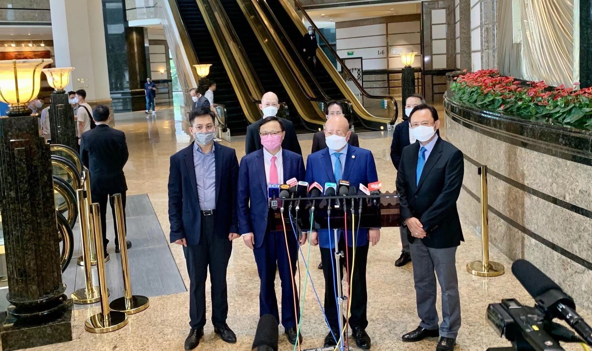 大公文匯全媒體報道,中國國家行政學院(香港)工商專業同學會(簡稱「CAGA」)今日(25日)下午向第六屆行政長官候選人李家超辦公室遞交《施政建議書》,由CAGA主席陳健文、副主席沈華、副主席石柱、副主席謝淦廷、秘書長王俊文、副秘書長鍾鴻興、副秘書長項慈恩、選委林浩輝代表提交,特首候選人李家超競選辦公室主任、全國人大常委譚耀宗代表接收。