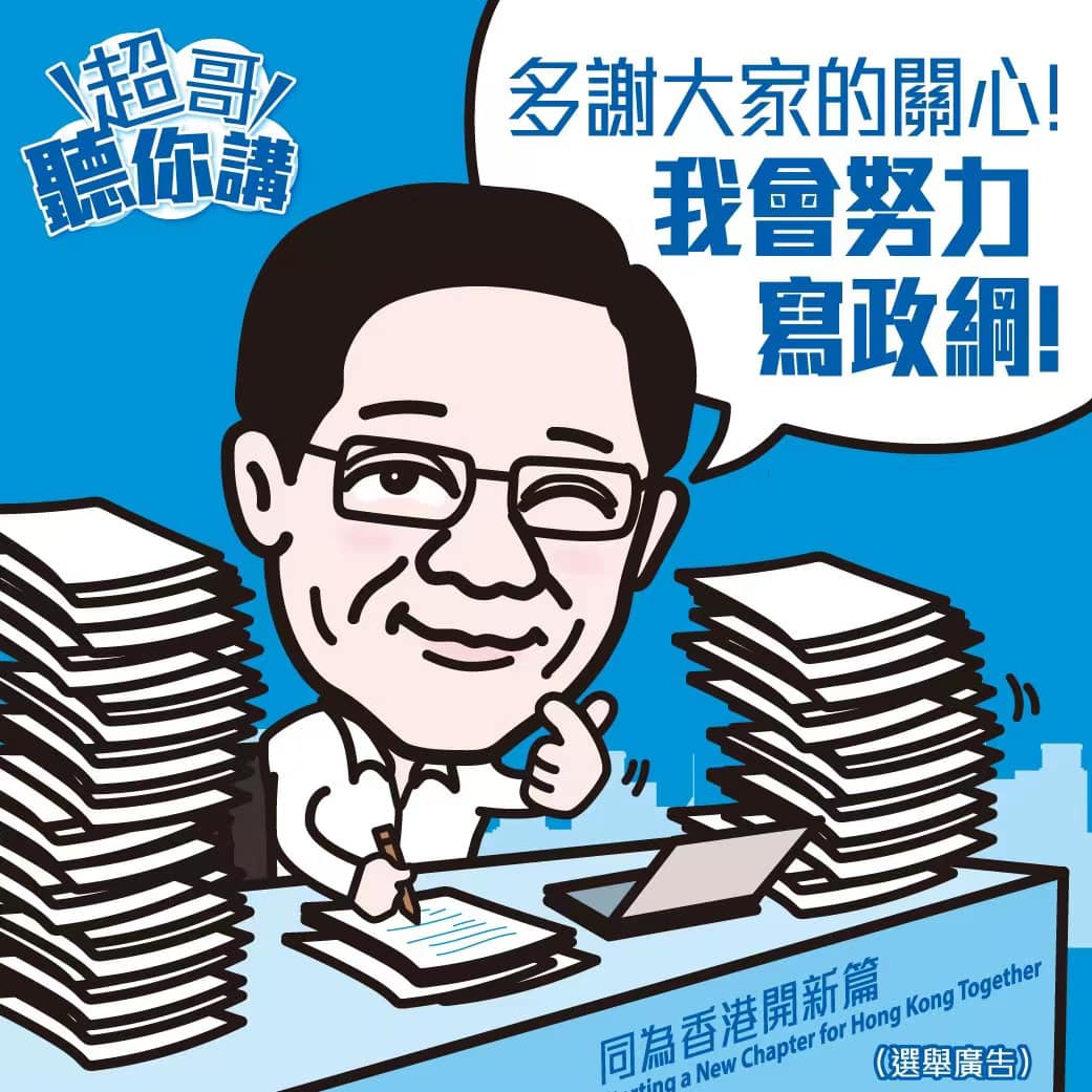 李家超說:「見到不少網民在我的個人專頁,留下暖心的問候,叫我注意身體,要有足夠的休息,並為我打氣。真的很感動,感謝大家的支持,我會繼續努力,全力以赴,寫好我的政綱。」