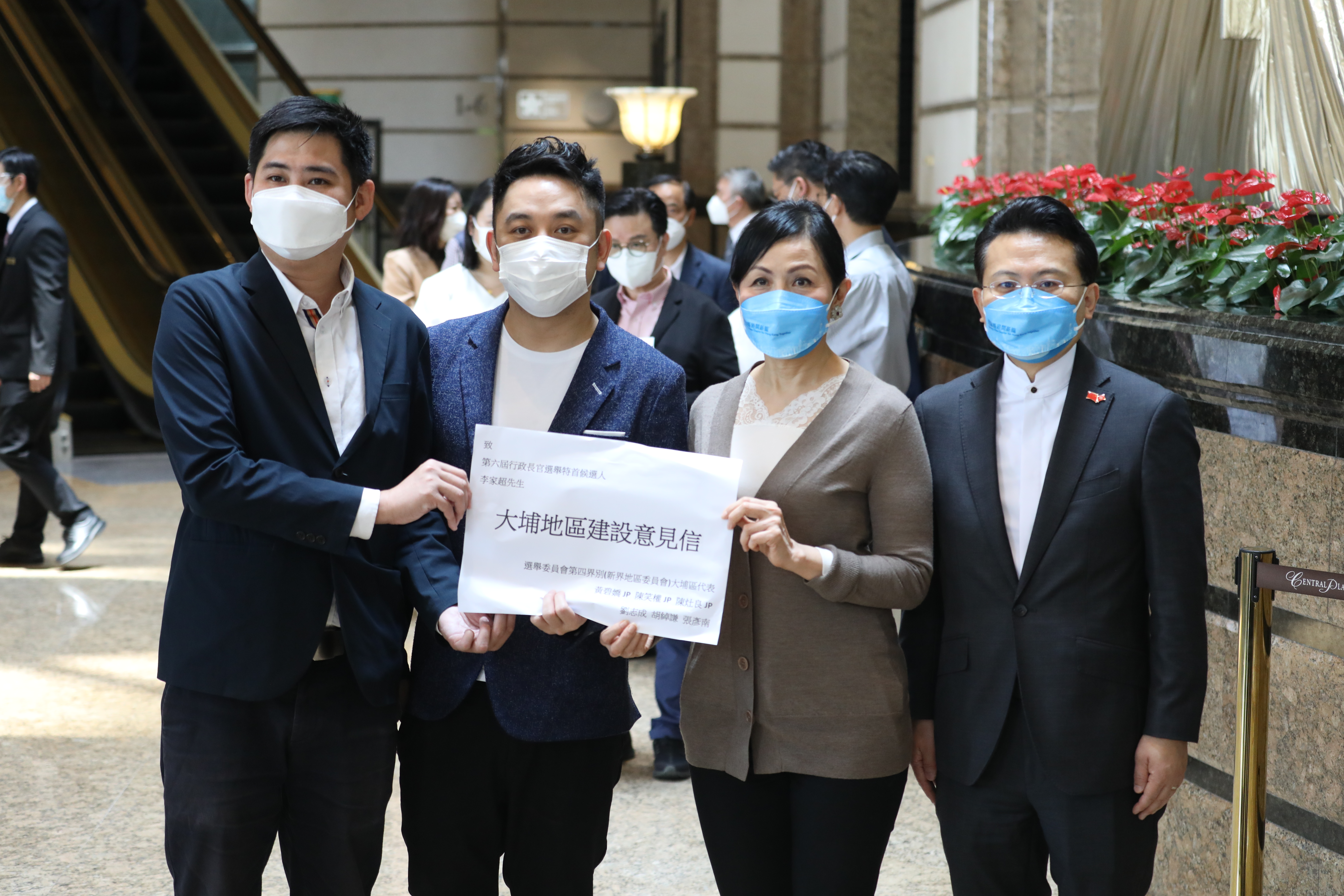選舉委員會第四界別(新界地區委員會)大埔區代表則提出15點建議,涵蓋交通、地區行政管理、地區治安等,尤其在交通方面,他們指出政府未來幾年將在區內建設3萬個單位,增加約6萬人口,加上吐露港公路飽和、東鐵綫早高峰爆滿等問題,交通將面臨嚴重擠塞,希望新一屆政府能夠重點解決。