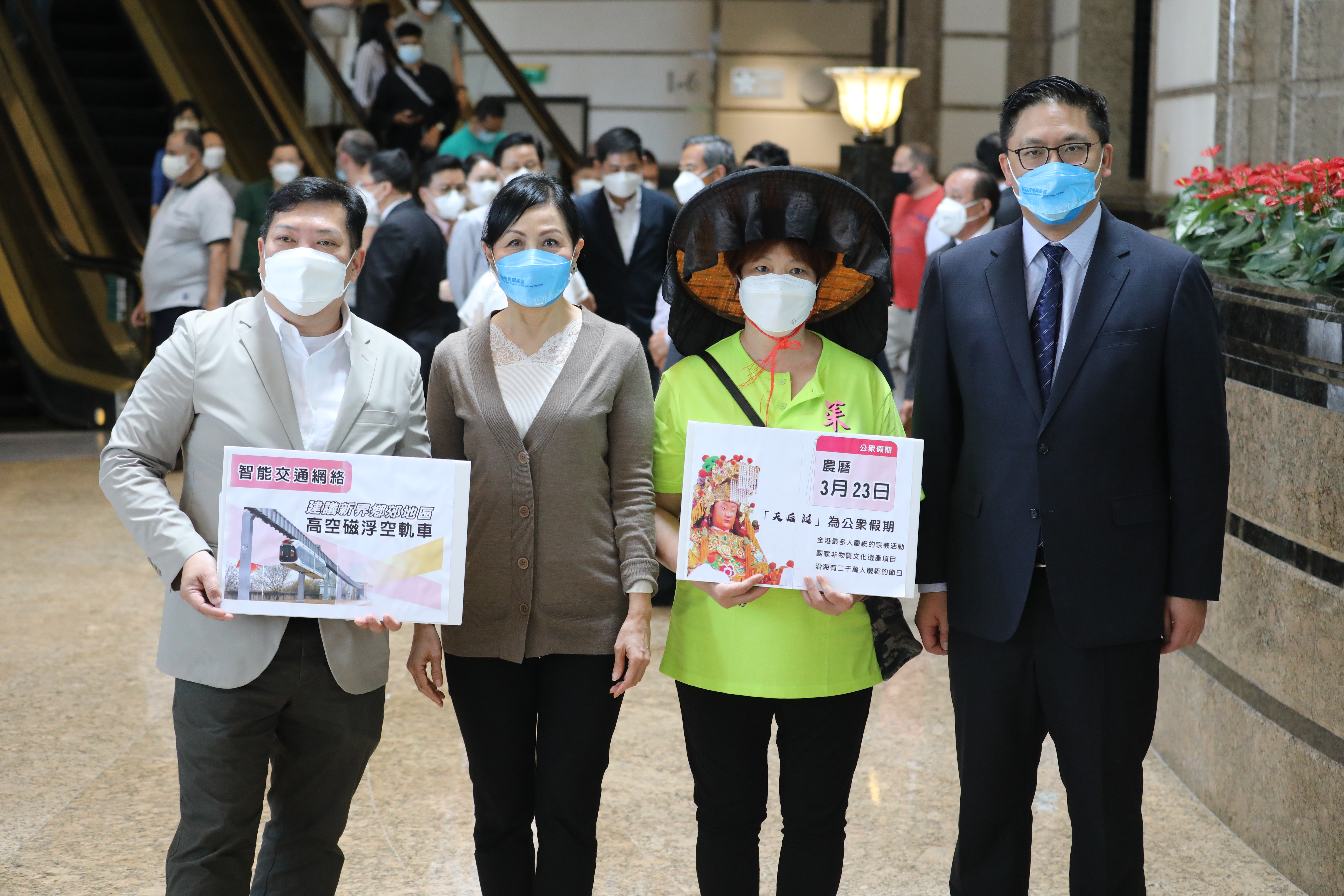 元朗區議會及居民則表示,在建議書中主要提到新一屆政府要在北部都會區的發展商有突破思維,為法例和程序拆牆鬆綁,縮短建屋時間,以發展「城中村」釋放祖堂地,及促請放寬城規會對鄉郊土地發展的限制,並建議在新界鄉郊地區建設高空磁浮空軌車。此外,他們還表示新界地區保留了很多傳統文化,特別是「天后誕」是全港最多人慶祝的宗教活動,希望新一屆政府能將每年農曆3月23日訂為公眾假期。