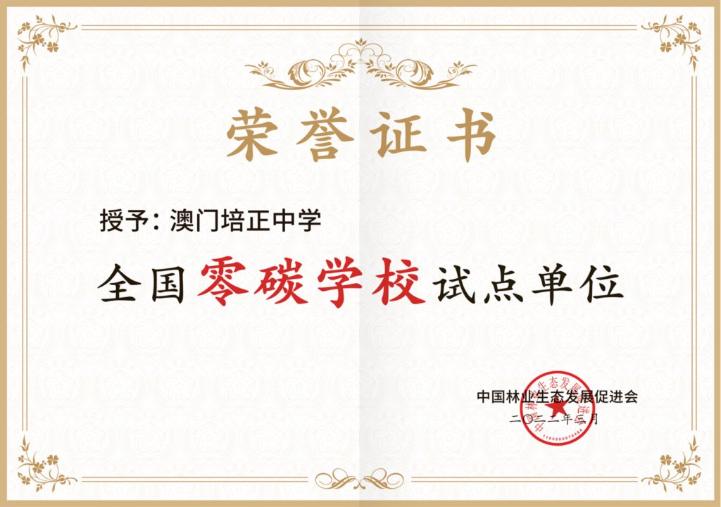 據了解,澳門培正中學近年來一直不遺餘力地推動環保教育。從2007年開始連續多年舉辦校園節能文化活動,並在澳門環保局設立的綠色學校夥伴計劃中成為首批合作夥伴,並頒發「綠色學校榮譽大獎」「綠色學校白金獎」等榮譽。學校還通過學術探究、藝術表達、正規課堂的配合和身體力行四方面提高同學的減碳意識。