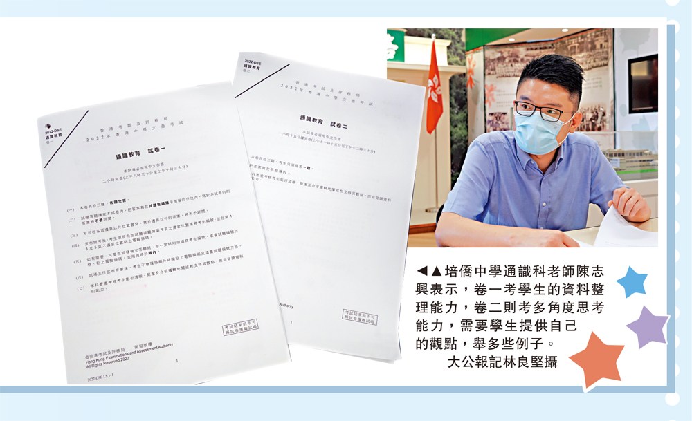培僑中學通識科老師陳志興接受《大公報》訪問時表示,今年通識科試卷議題內容都比較偏向生活化,比如卷一的東奧會、遙距工作等,都是發生在學生日常生活中的事件。此外,往年的考卷都會涉及現代中國的題目,但是今年沒有,而是多了一些比如卷二的祭祀、香港故宮博物館等傳統文化的內容。