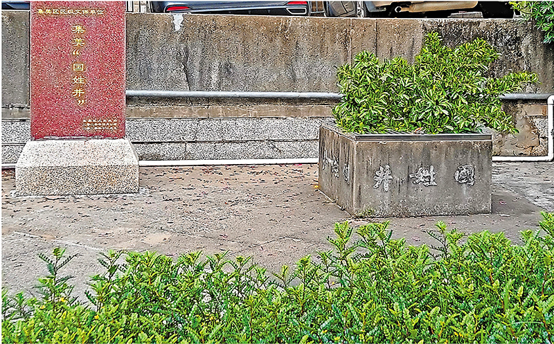 「國姓井」,一邊繫着鄭家軍,一邊連着老百姓。今年是鄭成功逝世360周年。六個甲子過去了,鄭成功依然活在炎黃子孫的心中。那日,我懷着對鄭成功的尊崇之情,特意走近位於集美街道潯江社區尚南路1號歸來園南部20米開外的那口「國姓井」,懷想、追思鄭成功。當我來到歸來園大院前,向門衛說明來意後,一位中年人指了指左前方說:「就在那邊的路下方。」我照其示意,穿過一座小花園,在尚忠路口旁,一個方形水泥井台赫然入目。井的一側,立着一方「文物保護」的石碑。抵近觀察,發現邊長約90厘米、高約60厘米的井台四周,都有「國姓井」三個魏碑浮雕。因為不再使用了,井口加鎖鐵欄蓋,一棵從井壁上生長的小葉榕,俏皮地探出「頭」來,似在訴說它與鄭成功有關聯的故事。
