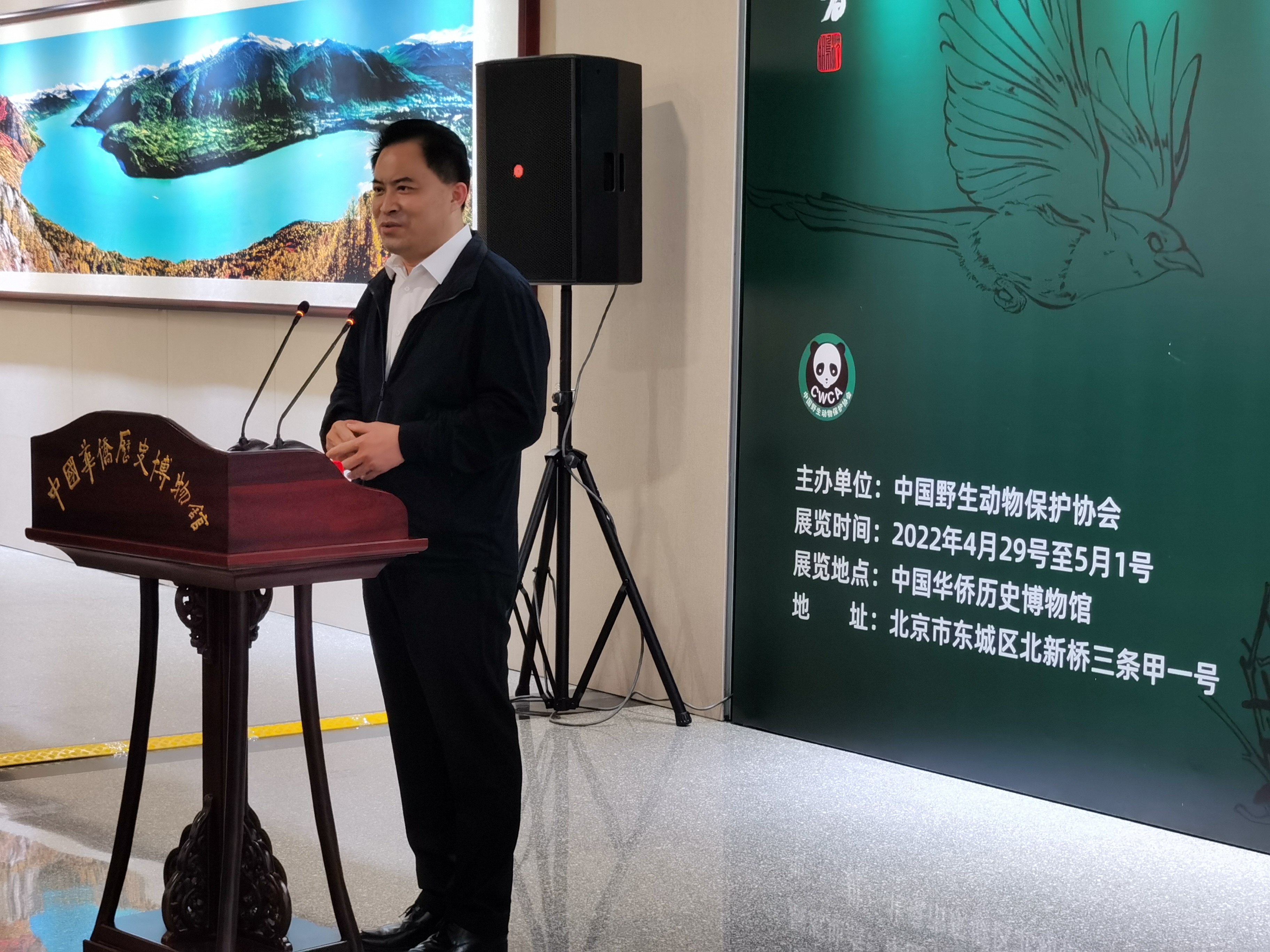 諾貝爾文學獎得主、著名作家莫言在現場致辭中表示,今天的展覽並不是一個單純的書法展覽,而且講述了一個故事,是一個保護動物、奉獻愛心的故事,也是一個走遍千山萬水的行者的故事,還是一個藝術人人生經歷的故事,能夠給大家很多的聯想和啟發。