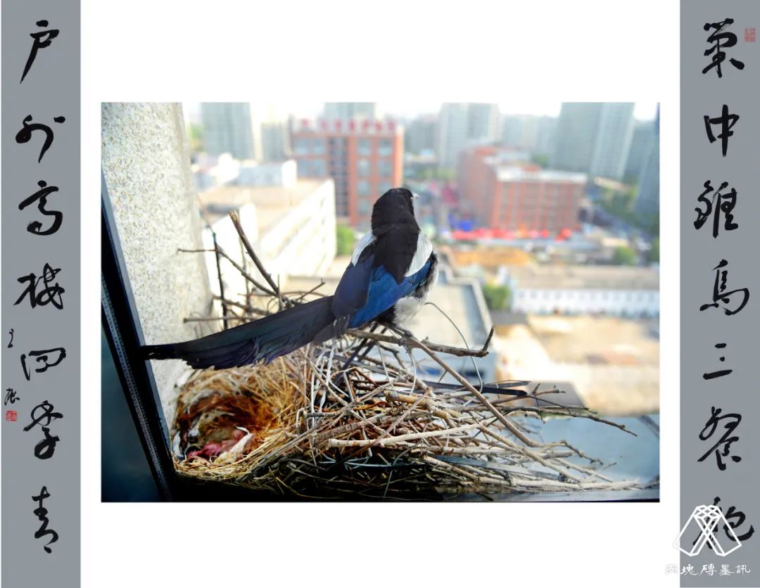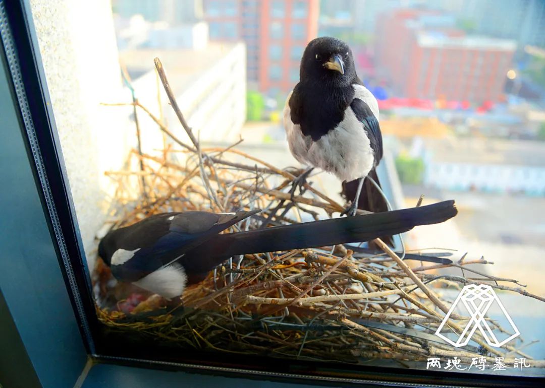 2014年3月底,兩隻喜鵲在我工作室窗台上歷經半年的辛苦,終於築成新窩,準備生兒育女。有朋自遠方來不亦樂乎,我把窗帘剪出幾個窟窿,把照相機、攝像頭伸到窗帘外,隔着玻璃拍下數萬個喜鵲一家生活的精彩瞬間。