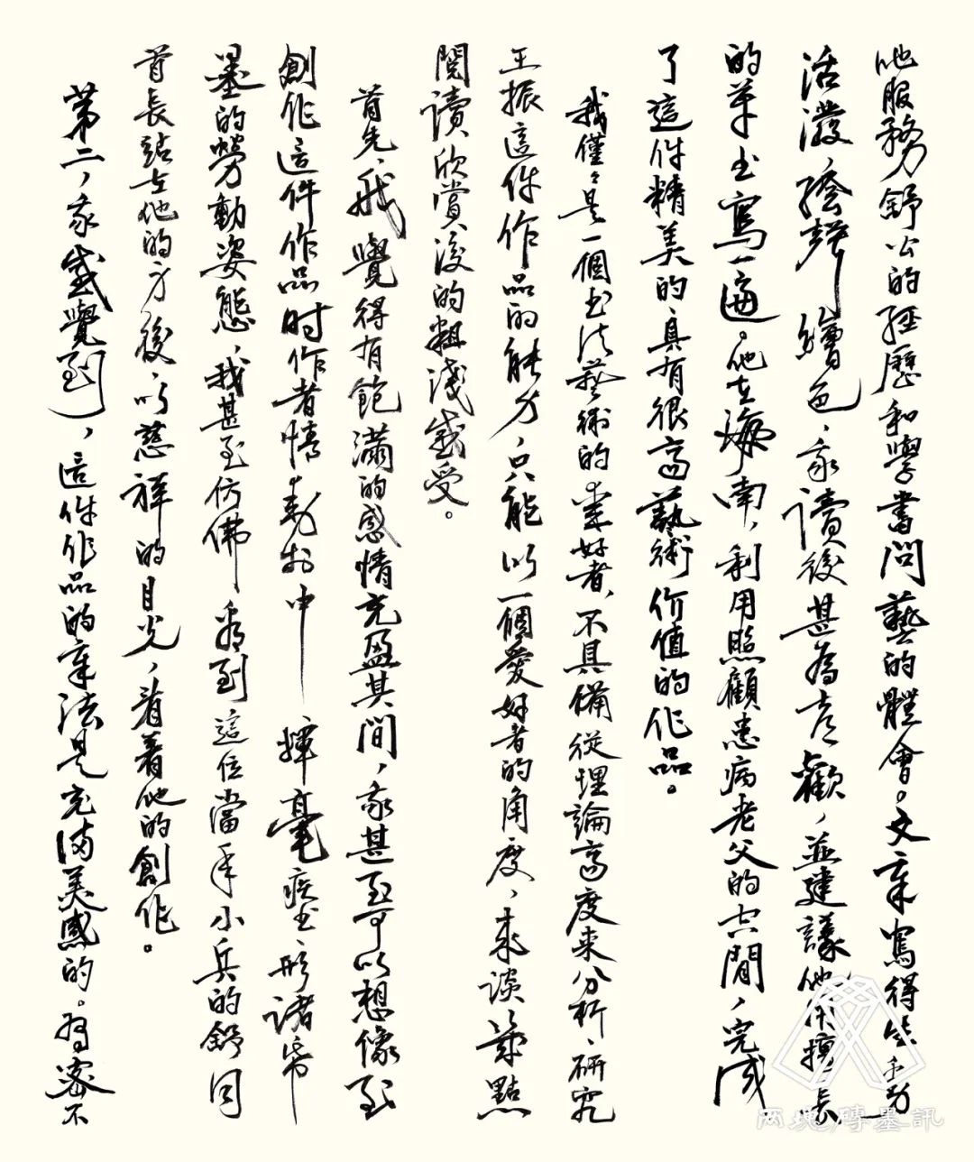 我僅僅是一個書法藝術的愛好者,不具備從理論高度來分析、研究王振這件作品的能力,只能以一個愛好者的角度,來談幾點閱讀欣賞後的粗淺感受。