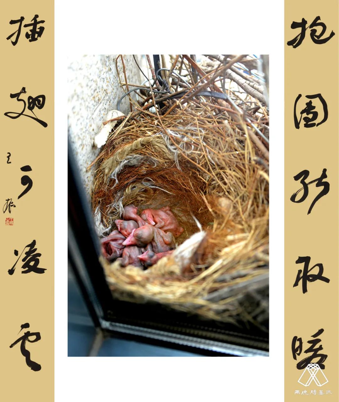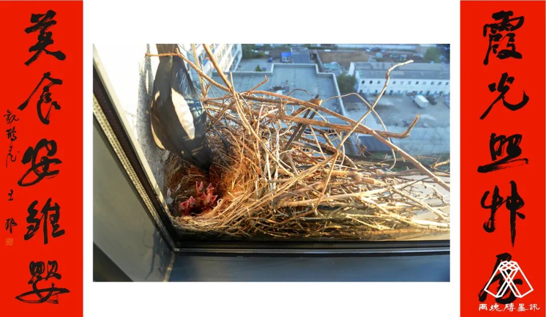 2014年5月2日,喜鵲夫婦經過二十一天的辛勤孵化,七隻小喜鵲全部破殼而出。一個個鮮活的生命,緊緊地擁抱在一起。在鋼筋混凝土上的鳥巢,離我的床只有一米多遠,幾乎是人鳥同室,其樂融融,其意無窮。