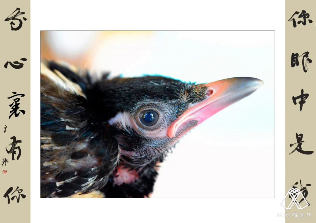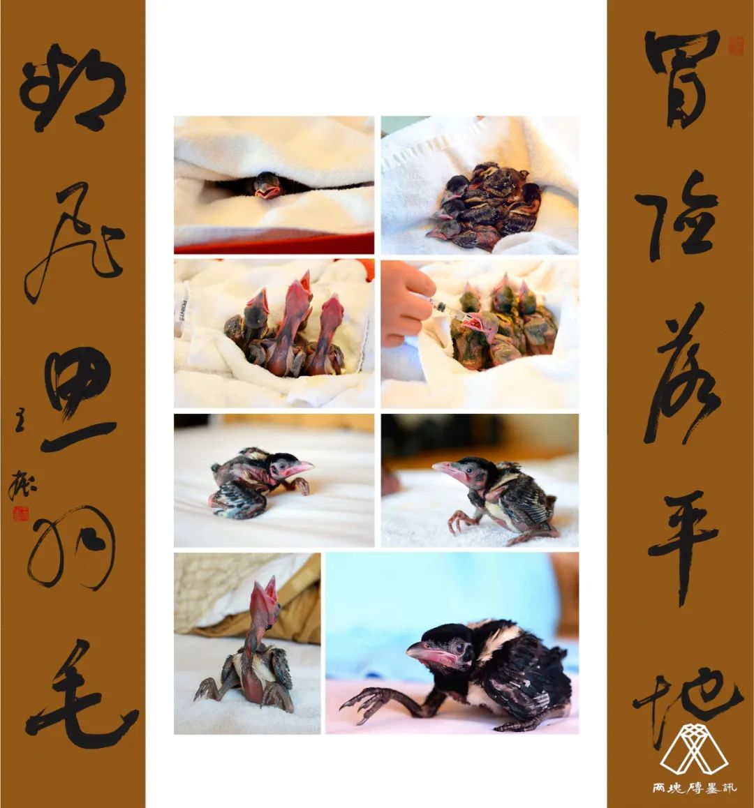 2014年5月11日上午,我將泡在鳥巢裏的四隻小喜鵲撈出來將它們精心清洗後,用吹風機吹乾,放在浴巾上,分別餵食並拍了寫真。隔着玻璃的人、鳥兩界,終於合二為一了。
