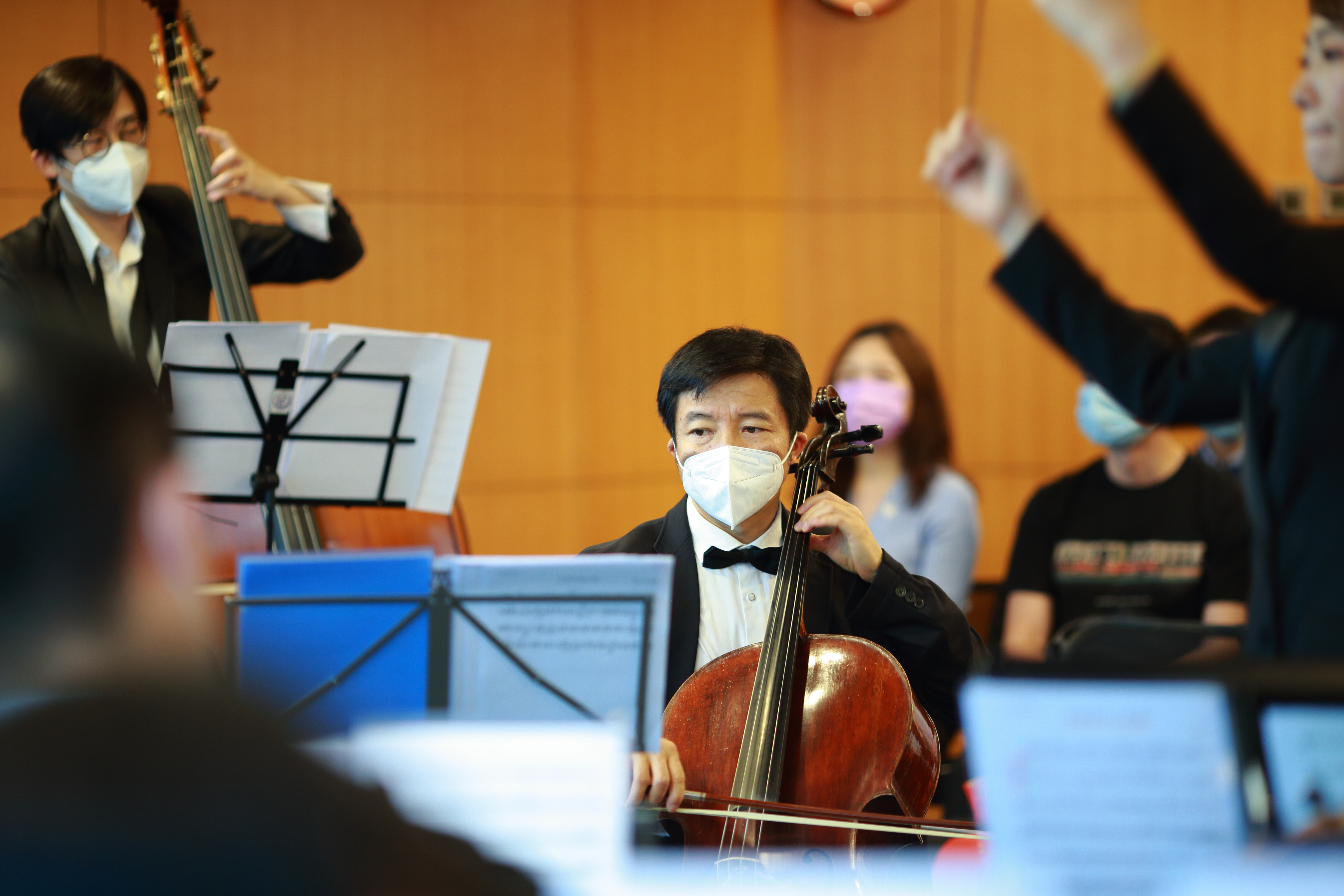 朗誦期間,在大灣區管弦樂團創辦人李楠的指揮下,18位樂手按三個章節依次演奏了《義勇軍進行曲》《保衛黃河》《五月的鮮花》《卡秋莎》《畢業歌》和小提琴協奏曲《春天》《第一樂章》《匈牙利舞曲》第五首、《圓舞曲》第二首、《卡門組曲》選段,以及《紅日》《獅子山下》《少年》《國際歌》等中外經典,贏得觀眾陣陣掌聲。
