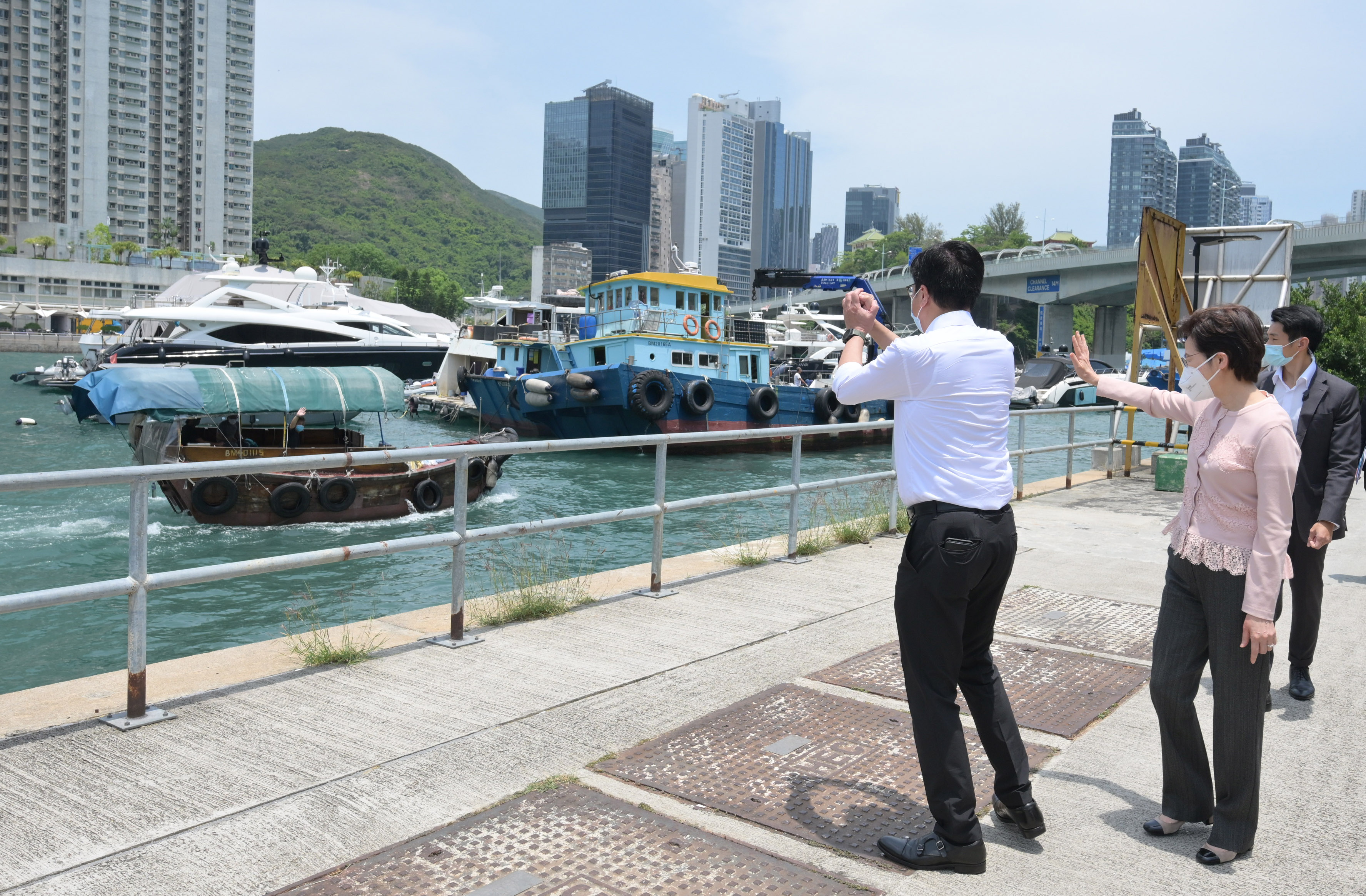 林鄭繼而到訪鴨脷洲近洪聖古廟的海濱,了解到躍動港島南辦事處正與政府不同部門沿着香港仔避風塘兩岸海濱構思不同主題區,以建設多採多姿的海濱環境,並積極推動有關開放毗鄰鴨脷洲公園圍封的園景和草地區等短期將見成效的措施,為市民帶來更多休憩空間。