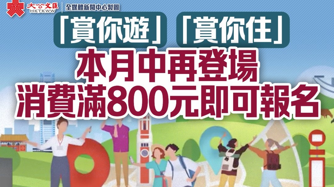大公文匯全媒體報道,本港第五波疫情緩和,社交距離措施亦逐步放寬。旅遊發展局今日(6日)宣布,推出全新「夏日同賞·就在香港」推廣,重推共8萬個名額「賞你遊香港」和「賞你住」。即日起,市民在本地實體的零售及餐飲商戶消費滿800港元,儲起機印收據,即可在5月中至6月分階段換取本地遊名額,或指定本地酒店住宿計劃500港元折扣優惠。