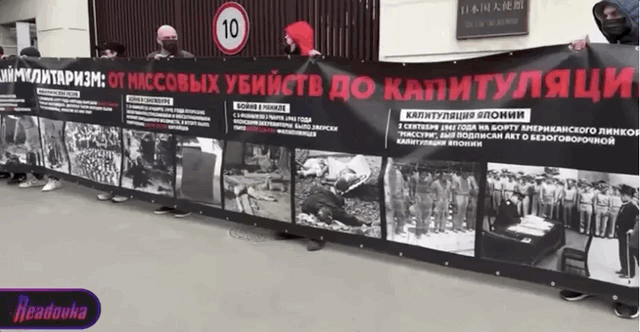 據俄媒readovka報道,軍事歷史專家為這次活動準備了材料。橫幅和傳單細數了日軍二戰時的累累罪行,包括殺害無辜平民。