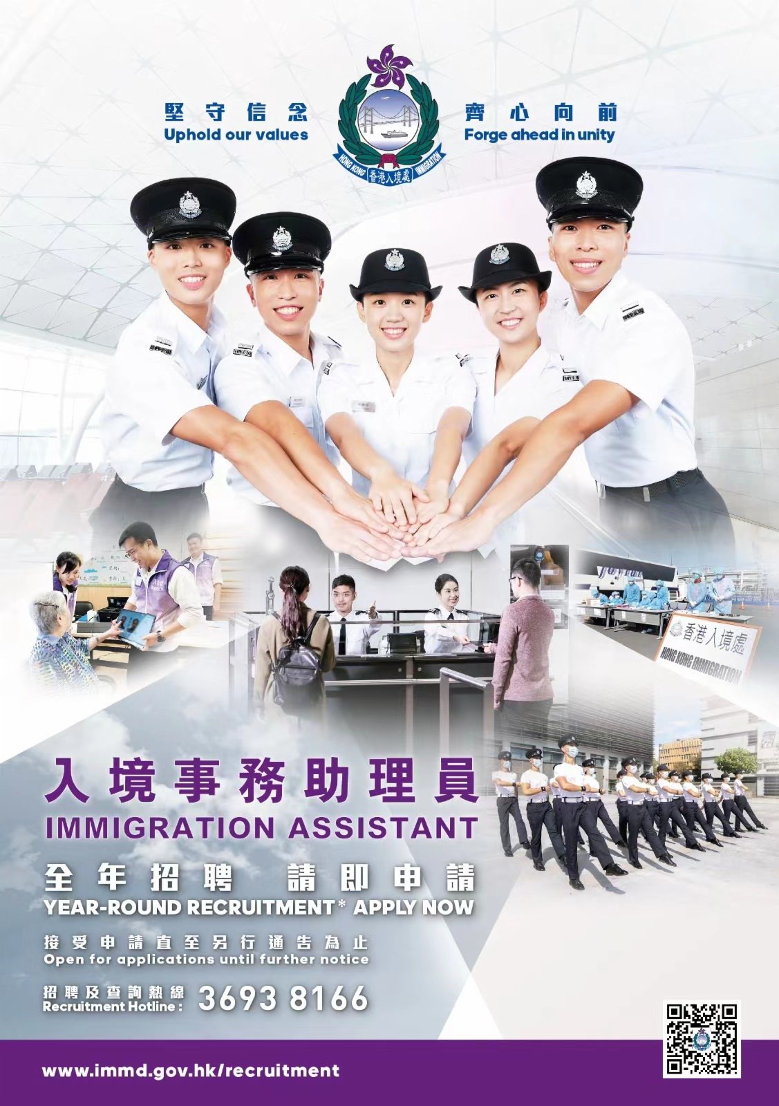 歡迎愛國愛港的年青人加入, 一起堅守國家的南大門!香港入境事務處是對國家高度忠誠的入境事務隊伍,堅定履行維護國家主權、安全和發展利益的責任。有關招聘詳情可於官方網站瀏覽。