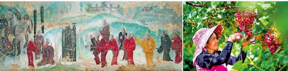 兩次出國,張騫成了中國「睜眼看世界的第一人」。雖沒有完成政治軍事任務,但他深入去了解所到西域各國諸如政治、經濟、文化、地理、特產等,還努力學習當地語言,尋遍當地美食。據說,他當時把匈奴駐地和周邊國家的食物都嘗遍了,還認真記下了食譜。臨走,還打包了一大包種子和一堆食譜。如色彩繽紛的葡萄,原產地是近東南亞,張騫將其引進到中國,先至新疆,經由河西走廊至西安,而後傳至其他地區;俗稱「三葉草」的苜蓿,原產地是外高加索、小亞細亞、伊朗一帶,經由張騫,在中國和大宛生根發芽;讓人愛恨交織的香菜,也是拜張騫的淘寶,從此遍布中原大地;餐桌上不可或缺的蒜,是張騫那時候從亞洲中部帕米爾高原帶入漢朝的;既是蔬菜又是水果的黃瓜,當時是印度的特產,被張騫引入;既是小菜又是糧食的蠶豆,原產自中東,張騫引入中國後,在八世紀左右又從中國傳入日本;被稱為八穀之冠的芝麻,原產於非洲或印度,張騫從大宛引進中國;在中國被視為子孫眾多的石榴、營養豐富的胡桃、全世界最貴的香料番紅花、有「平民人參」美名的胡蘿蔔等,也都曾在張騫的「購物車」之中,淘寶列表之內。