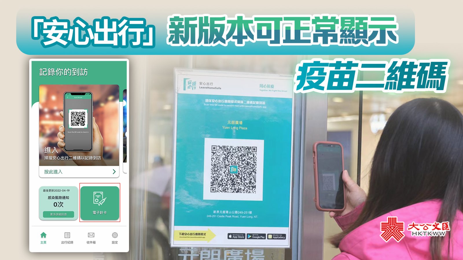 大公文匯全媒體報道,政府資訊科技總監辦公室今日(10日)呼籲,市民更新「安心出行」應用程式到最新3.2.3版本,解決部分手機間歇性未能正常顯示「疫苗通行證」二維碼的問題。