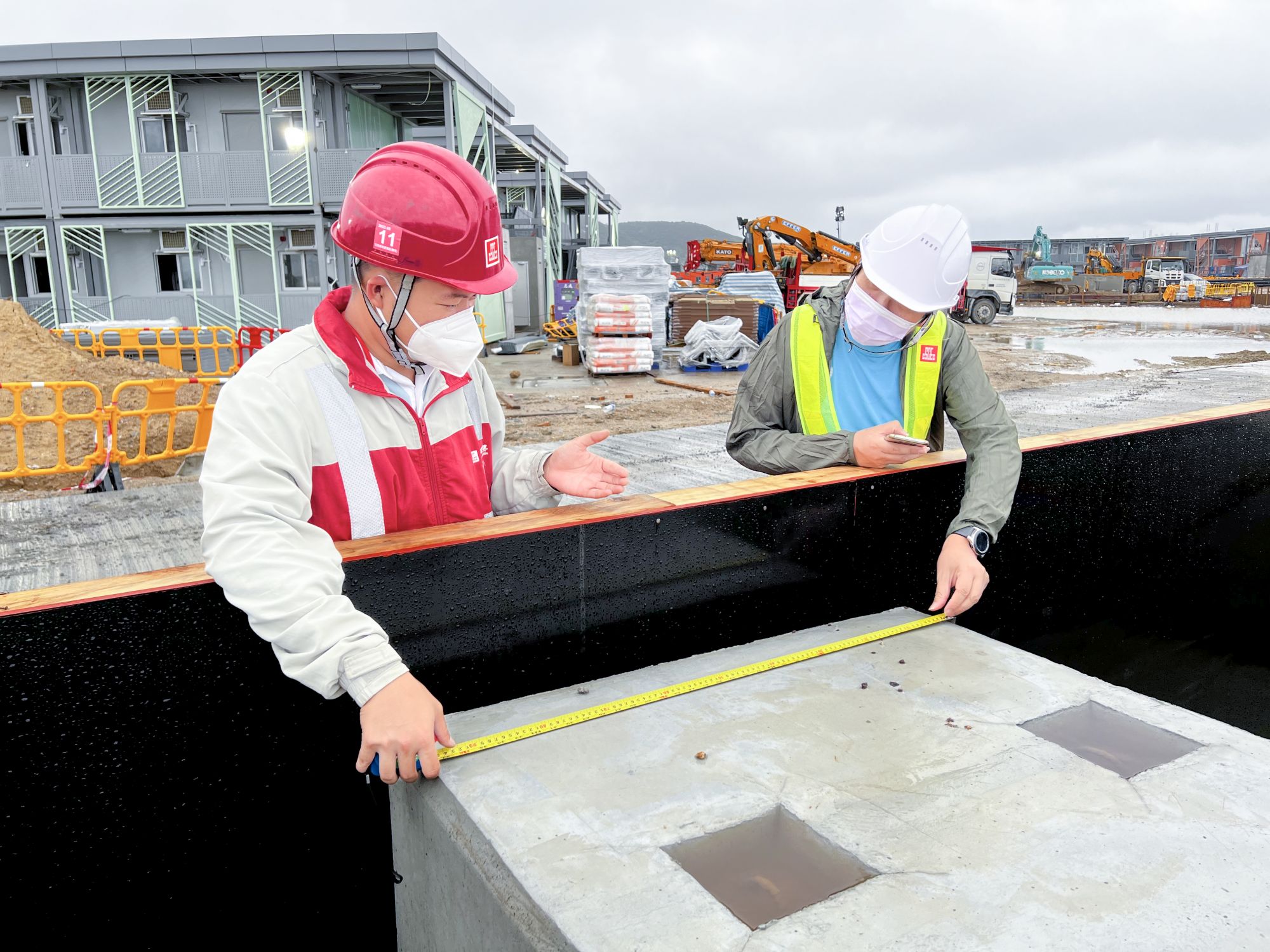 另一位年輕人趙偉是中國建築工程(香港)有限公司見習工程師。他說,自己加入建造業僅一年多,能夠參與抗疫工作,為社會出一分力,他感到十分榮幸。回想今年2月,他和團隊是第一批到竹篙灣新一期隔離設施工作的工程人員,當時惡劣的天氣和環境無阻他們迎難而上。眼見確診數字飆升,為了盡快協助完成興建設施和減少接觸家人,趙偉更曾連續兩星期沒有回家。
