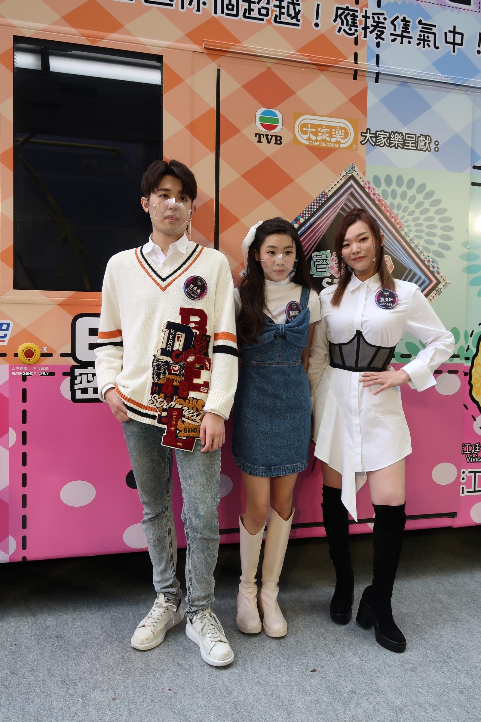 23位學員手持吉祥物造型紙牌會見傳媒,當中的吉祥物名稱有「添飯」、「十邊形」、「燈神」、「通粉」、「蕭幫」及「狂落鹽」等。