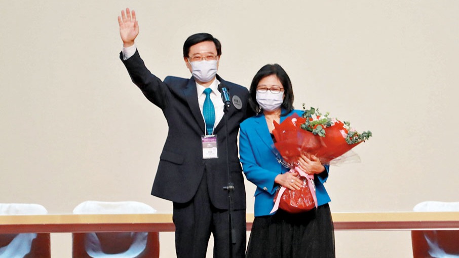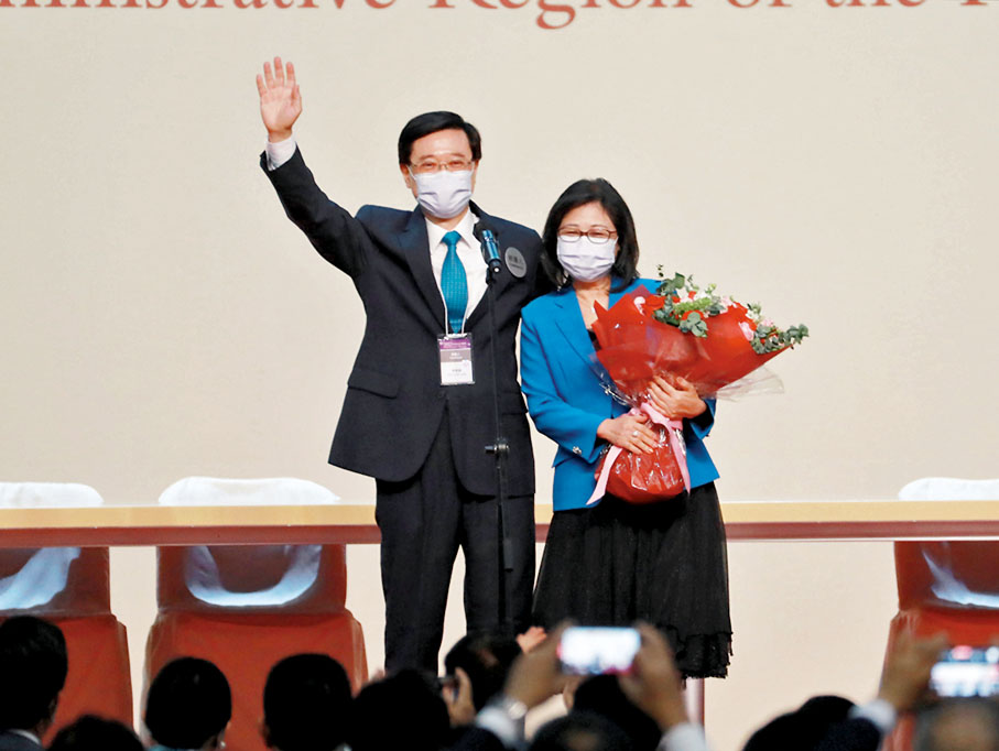 (香港文匯報記者 鄭治祖)當選為香港特區第六任行政長官人選的李家超,當天上台發言時公開多謝太太林麗嬋,並邀請太太上台,送上花束並互相擁抱。李家超昨日接受電台訪問表示,自己多年來專注工作,較少投放時間在家庭上,感謝太太一直照顧家庭,而太太會參與多少特首夫人的工作,會由她自行選擇。