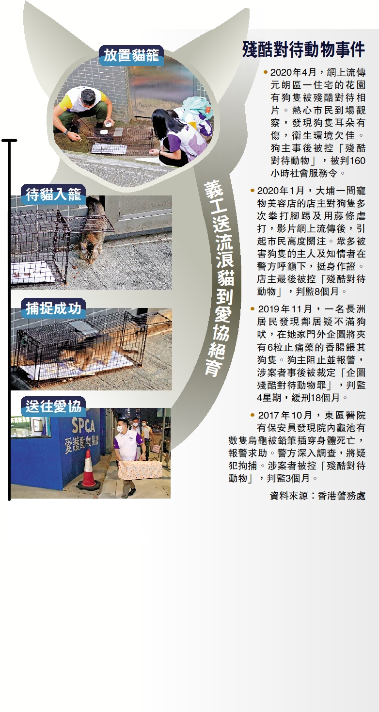 「今晚參加的義工反應非常踴躍,大家都希望用工餘時間為守護動物出一分力。警方間中會接到『受傷動物發現』、『動物屍體發現』、『懷疑毒害動物』甚至『殘酷對待』等案件,故此,如流浪貓隻數量受控,無論對貓隻生活環境,以及減少傷害動物案都是好事。」當晚參與誘捕行動的新界南總區防止罪案辦公室主任楊蓉總督察向大公報記者表示。
