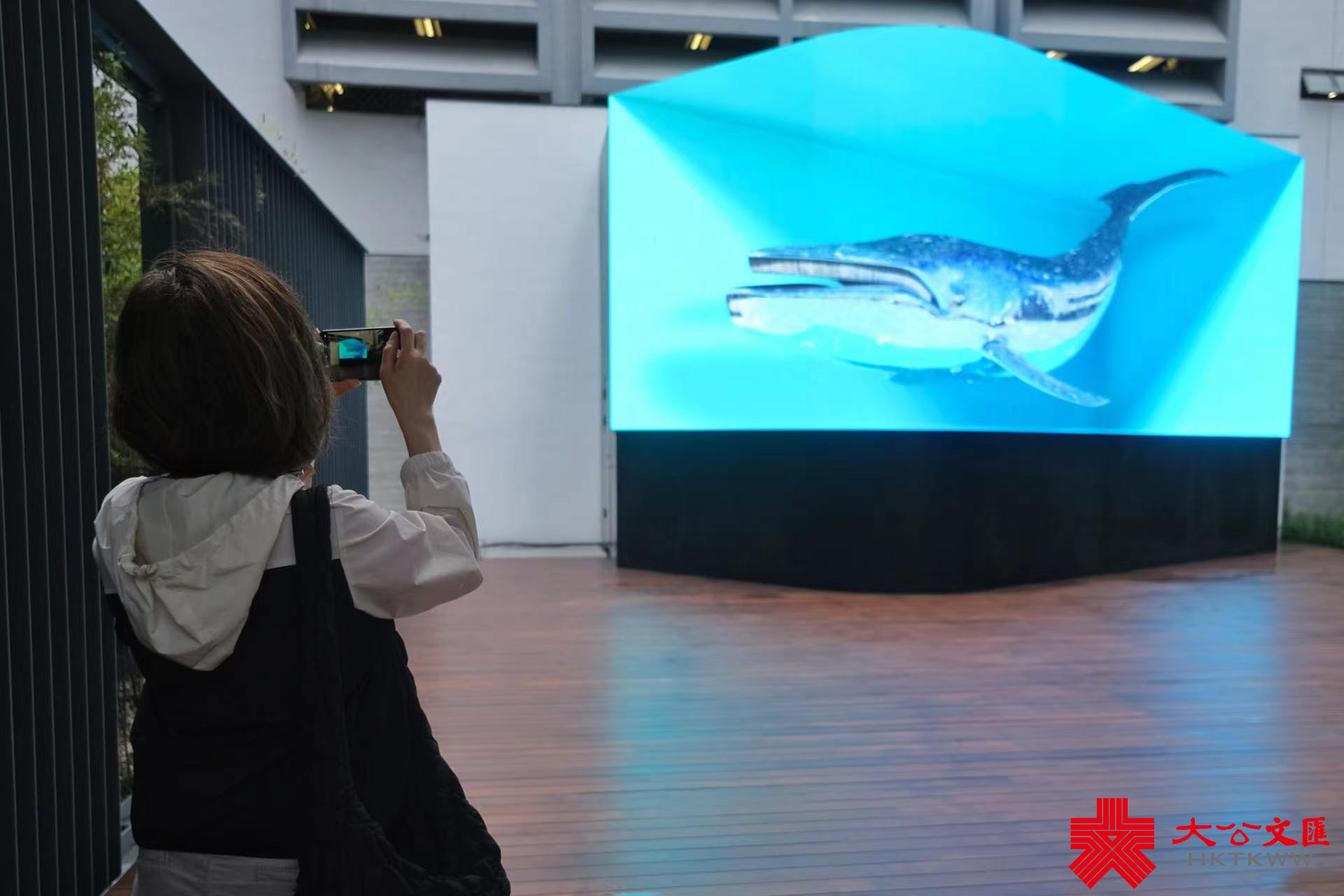 大公文匯全媒體報道,位於北角的油街實現新藝術空間,新擴建部分將於明天(24日)向公眾開放,並推出10個藝術項目,期望為區內提供更多藝術休憩空間及成為香港文化地標。當中包括一個立體屏幕,展出兩項超像真數碼映像,不用立體眼鏡,就可見到立體海浪及鯨魚映象。
