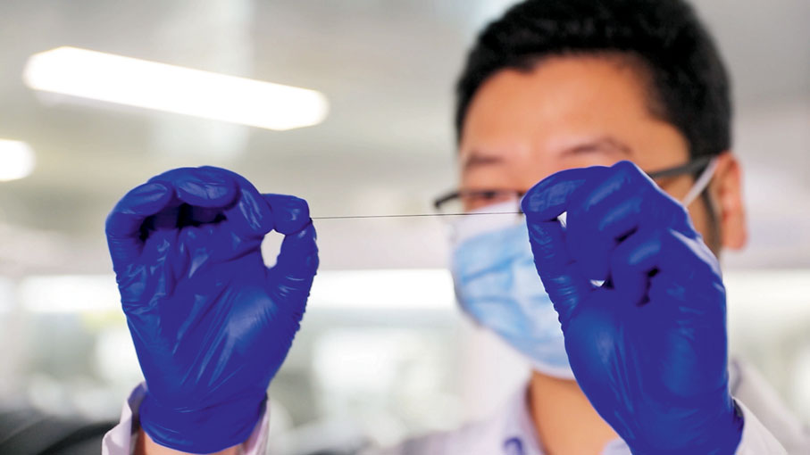 「儘管它只有十分之一根頭髮絲粗細,卻可以輕易提起10g重的砝碼,也可以準確檢測同一張桌子上掉落繡花針產生的微弱振動。」西北工業大學黃維院士團隊王學文教授長期專注於柔性傳感材料與器件相關研究,並探索其在健康醫療、人機交互等戰略性新興領域的應用。「柔性電子已經融入到社會的方方面面,那麼柔性傳感作為柔性電子非常重要的一個組成部分,也是去感知外部世界的一種信號,通過信號的感知實現人機交互,在健康醫療領域的發展擁有重要的潛力。」