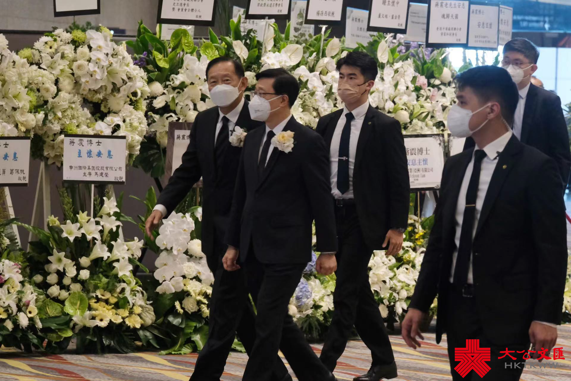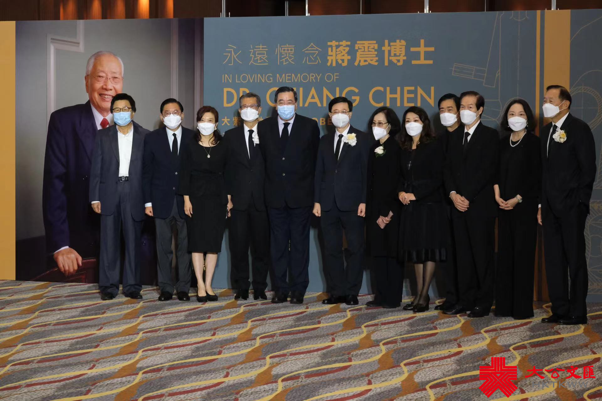 (大公文匯全媒體記者 楊新雨)香港著名工業家,大紫荊勳賢、OBE、蔣震工業慈善基金創辦人及主席、震雄集團有限公司創辦人及榮譽主席蔣震博士於2022年3月13日,安息主懷,享壽一百歲。蔣震博士追思會於今午(26日)假香港會議展覽中心會議廳舉行,會場設視頻,供與會者緬懷蔣博士的精彩人生、愛國情懷和堅毅克己奮鬥的風範。候任行政長官李家超、立法會主席梁君彥、財政司司長陳茂波等出席悼念。