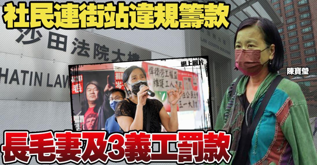大公文匯全媒體報道,「社民連」主席、「長毛」梁國雄妻子陳寶瑩和3名義工,於去年6月底於沙田港鐵站外擺街站,為「長毛」梁國雄等政棍籌款,昨日在沙田裁判法院各承認一項沒有許可證在公眾地方籌款罪。陳寶瑩自行陳詞時稱,「社民連」其他財路已斷,只得依賴街頭籌款。裁判官張志偉最終判陳寶瑩罰款1,200元,3名義工則罰款800元。