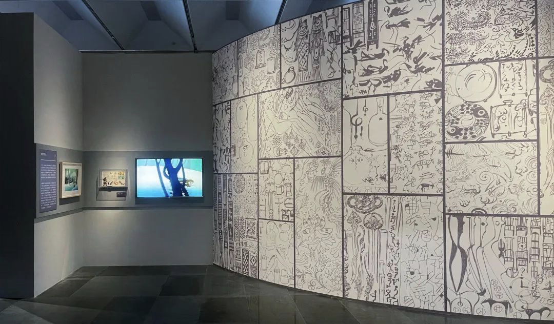 此外,展覽還以多種創新手段引導觀眾進入韓美林豐富的藝術世界。「美林軌跡」梳理了藝術家的人生經歷並以時間長廊的形式展開,講述韓美林在安徽期間的藝術人生;「時代光影」聚焦他深入民間採風,汲取民族藝術養分的萬里征程;「藝術魔牆」是為展覽特設的數字化項目,觀眾可通過觸屏搜索欣賞來自韓美林藝術館的海量數字化作品,徜徉於「美林的世界」。在展覽的最後,安徽省美術館特別開闢了一個獨立部分「秀木成林」,將韓美林過去數十載的設計手稿一一呈現。