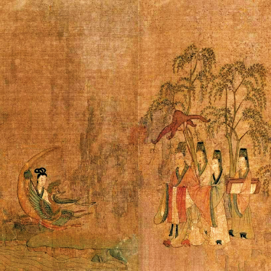 3.簡介:三國文學家曹植在其名作《洛神賦》虛構了自己與洛神之間淒美的愛情故事。這一經典的文學母題,成為了歷代書畫創作的靈感來源。宋元以後,以《洛神賦》為主題的繪畫常與東晉畫家顧愷之聯繫在一起,並成為後世畫家追摹的典範。本品一般被認為是北宋摹本,屬存世《洛神賦圖》中年代較早之佳作。作品不書賦文,以連續的構圖,描繪了曹植與洛神從邂逅到分離的多幕情景。畫面敷色濃艷,用筆如春蠶吐絲般細勁綿延,人物幾乎與山、樹等大,體現出古朴稚拙的六朝繪畫遺韻。