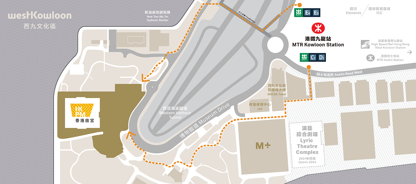你也可以向司機展示博物館的地址:香港九龍西九文化區博物館道8號香港故宮文化博物館。