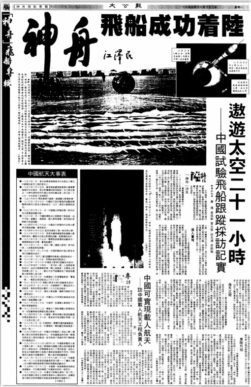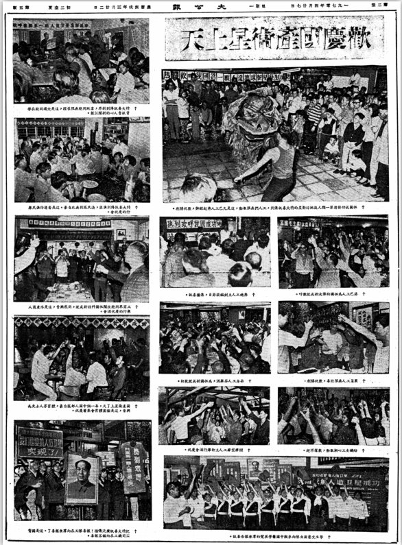 《大公報》報道太空新聞一點都「不離地」,貼心配上介紹我國衛星「飛經」各地的時間;更特別溫馨提示東方紅經過香港上空的時間。抬頭望天,感受祖國的偉大,香港市民可以一同分享這驕傲時刻。專版還配上人造衛星的小資料、長途電話直擊廣州市民的歡騰喜悅……《大公報》的報道體現了與航天員一致的專業精神。