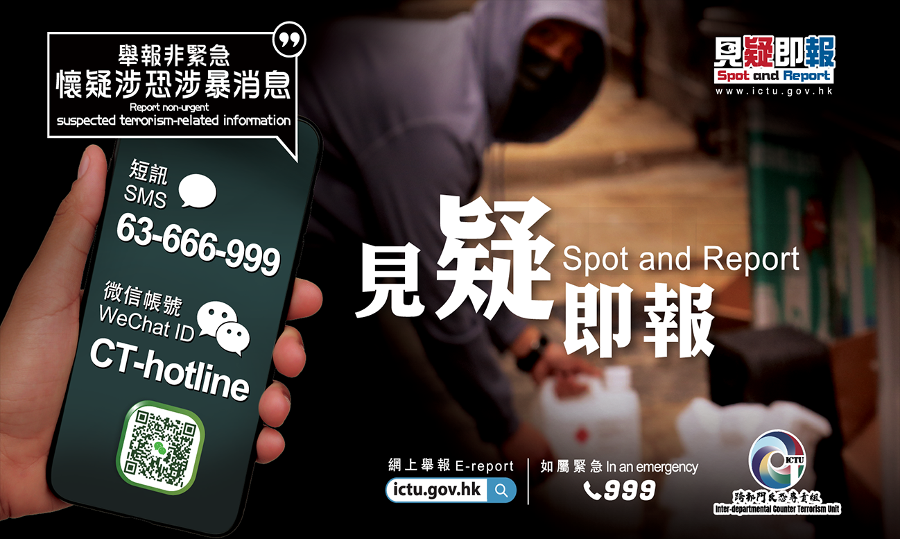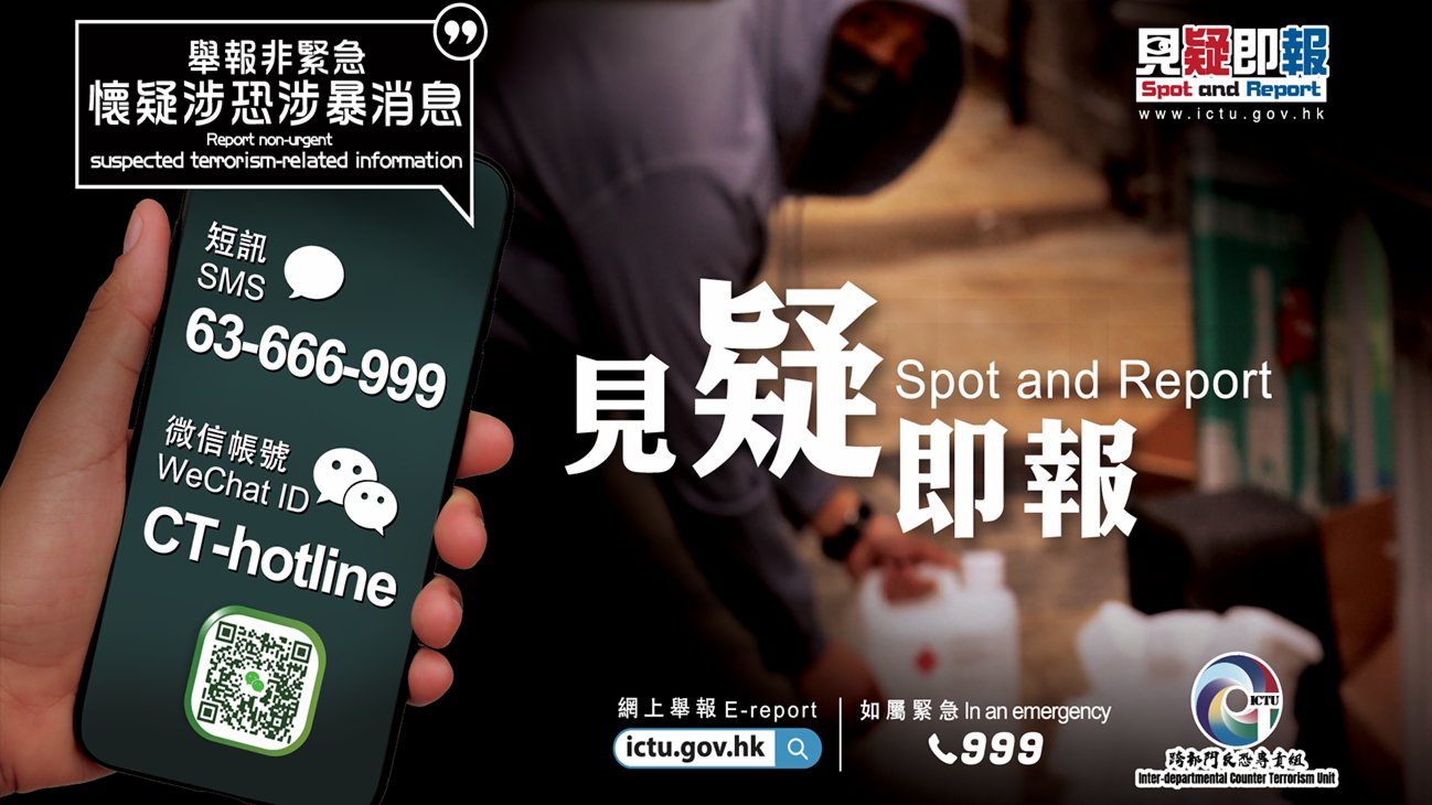 大公文匯全媒體報道,自香港國安法生效,本港整體治安大致回復穩定,惟仍有零星本土極端分子對社會構成潛在威脅。為鼓勵市民提供涉恐涉暴罪案線索,打擊恐怖主義在港萌芽,警方今日(8日) 推出「反恐舉報熱線」,並增設賞金制度。