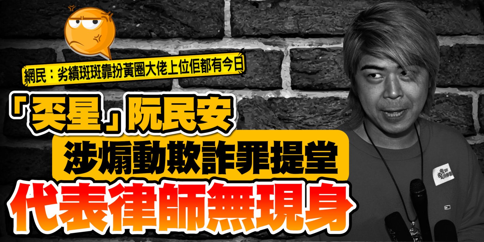 大公文匯全媒體報道,攬炒派撐暴「奀星」阮民安(41歲),被控以一項作出一項或多項具煽動意圖的作為及一項欺詐罪,案件昨首度在區域法院提堂,代表被告的律師沒有現身。在法官陳廣池查問時,阮表示已撤銷法援申請,打算聘用私人律師。陳官將案件押後至7月26日,並叮囑須盡快接觸其律師,以保障其自身利益。