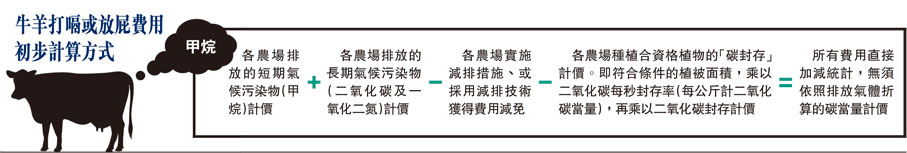 根據政府與農業界磋商後制訂的計劃草案,今次農業碳排放收費將採取「氣體分類計價模式」,依照溫室氣體特性分為長期及短期氣候污染物,其中二氧化碳便是長期污染物的代表。短期污染物則以甲烷為主,因甲烷雖會造成更強的溫室效應,但不會在大氣中長期停留,若能及時採取行動降低此類氣體排放,即可迅速改善空氣質素。