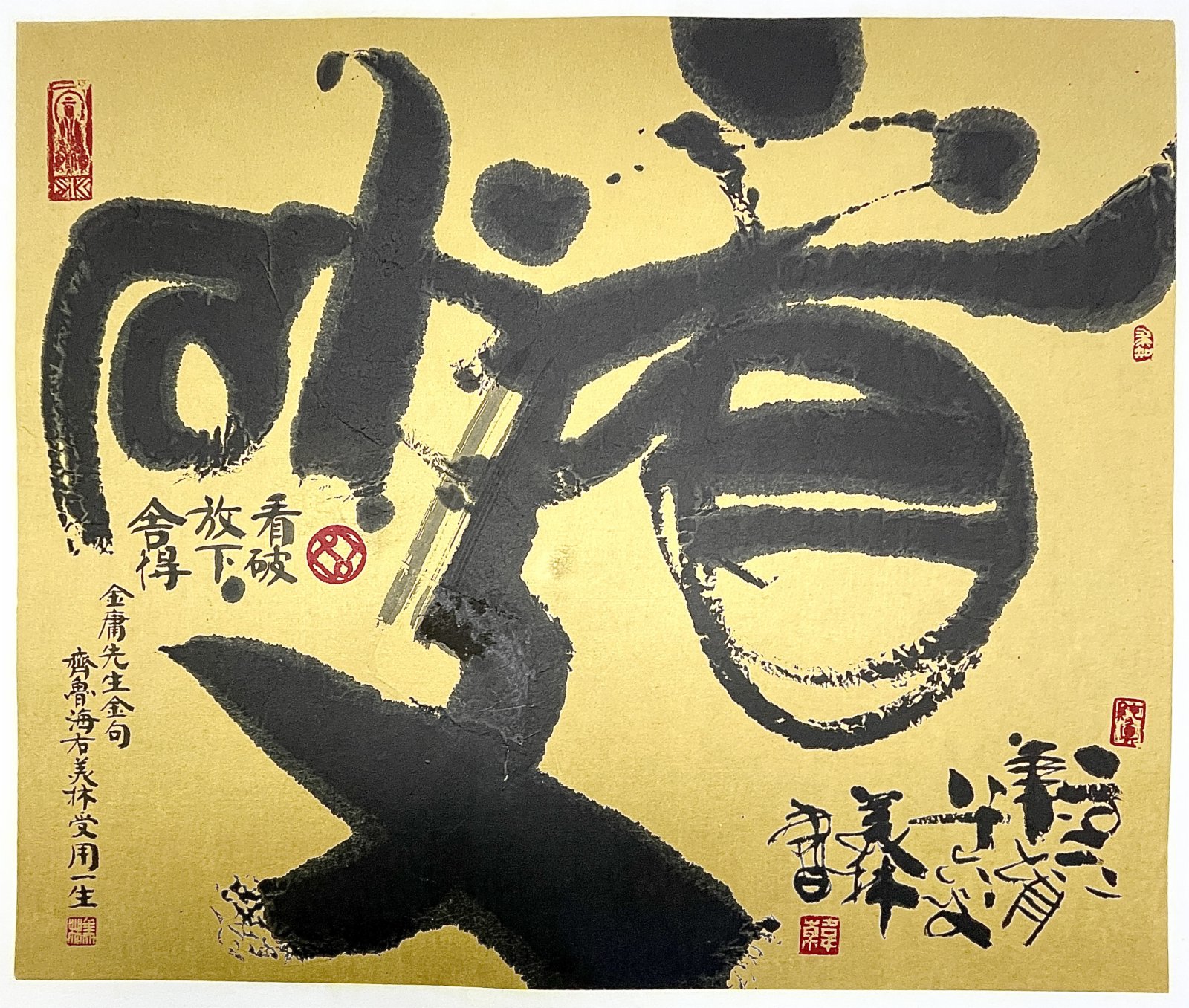 據央視網報道,近日,藝術大師韓美林先生將武俠小說家金庸先生的金句「看破、放下、捨得」,書於筆端。韓美林先生的書法如游龍走蛇、力透紙背,觀者無不為之震撼。