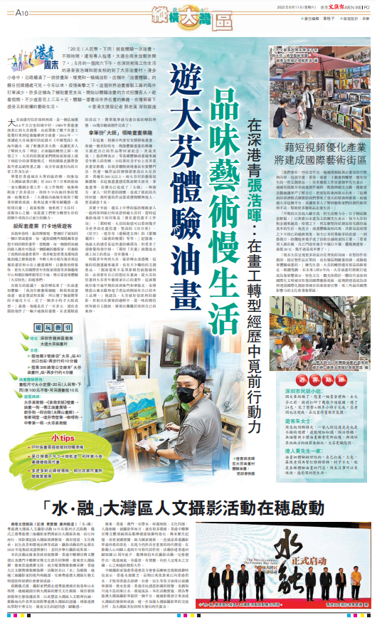 畢業於香港城市大學的張浩暉,因參加「大灣區就業計劃」於2021年7月來到前海一家互聯網企業工作。在工作期間,他參與對接了許多項目,得到不少內地同事的幫助,收穫很多。「大灣區內地城市取得了顯著的發展成就,我來這裏不僅有歸屬感,也特別自豪。」趁着假期,他來到了大芬村,放鬆身心之餘,也從畫工們努力轉型生存的經歷中尋找自己前行的動力。