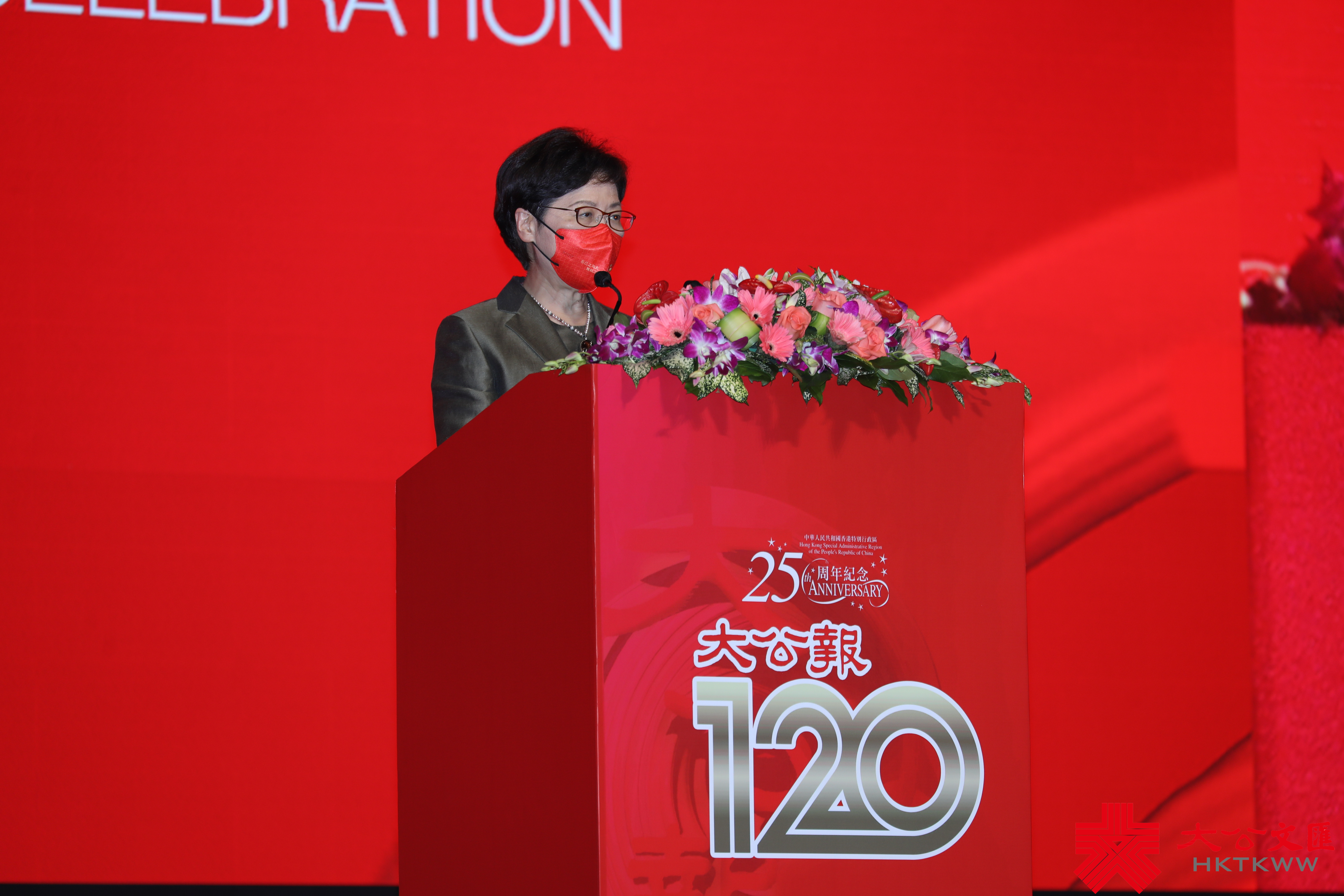 行政長官林鄭月娥在致辭時表示,《大公報》自1902年6月17日在天津創刊,至今整整120年歷史,是香港刊印界中歷史最悠久的中文報紙,在香港回歸祖國、保持香港長期繁榮穩定的時代征程中,發揮了積極作用,凸顯了《大公報》在中國近代歷史,以及在新時代發展中所肩負的重要角色,同時助力推廣國民教育,引導讀者鑒古知今,從而培養他們的愛國之情,砥礪強國之志,實踐報國之行。